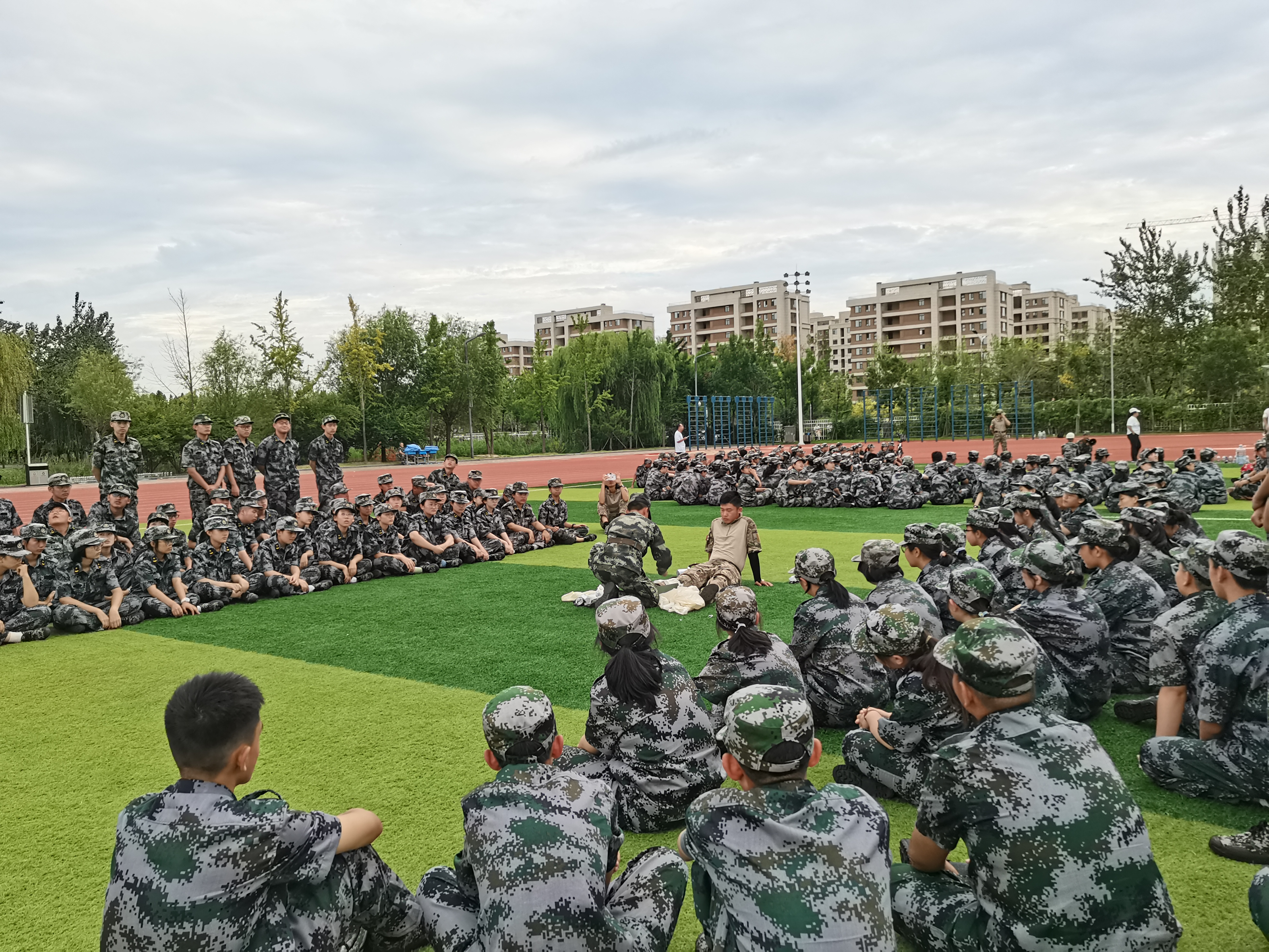 2022级军训已经临近尾声,但操场上的口号声依然嘹亮高亢,迷彩绿依然活泼有力。不管是秋阳当空还是秋风来袭,高一学生军训的热情不减,激情有加。