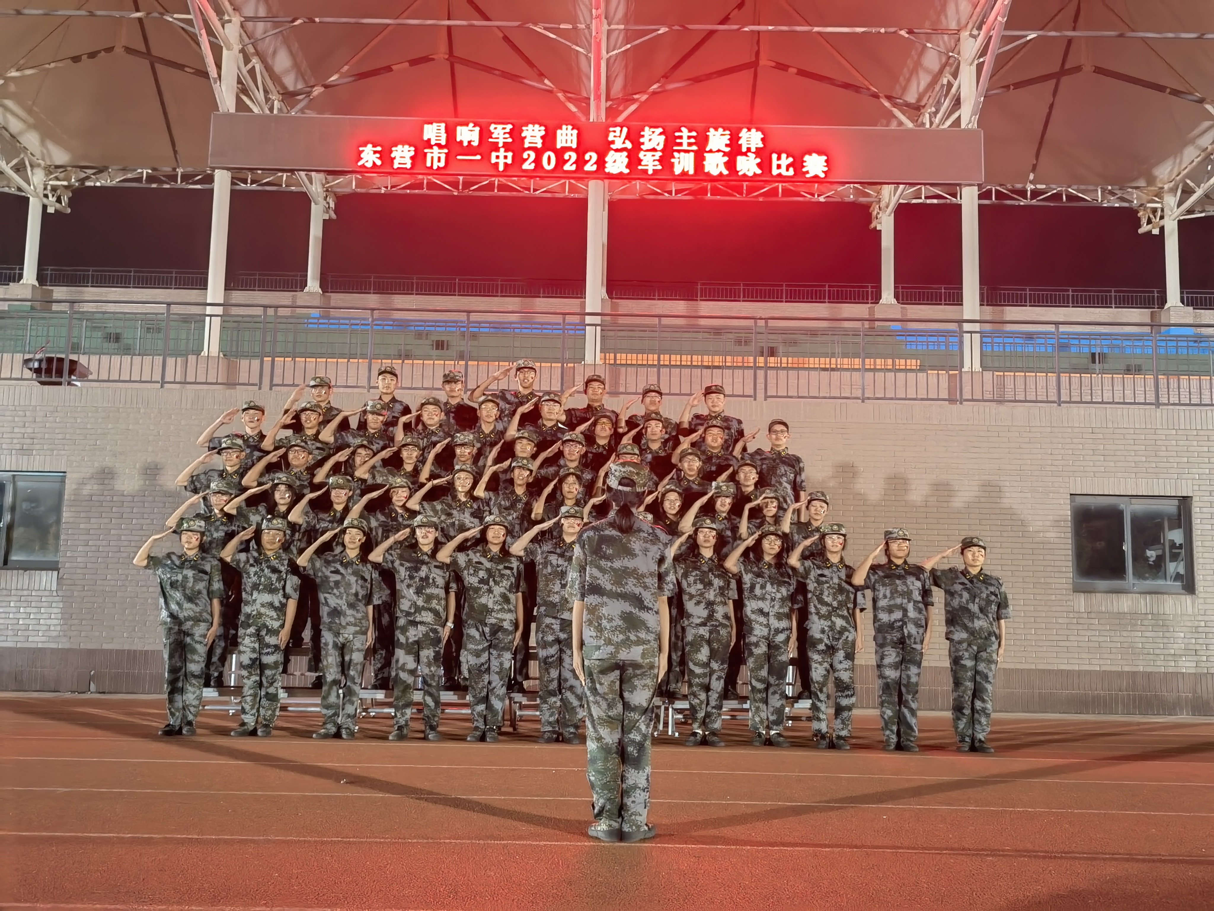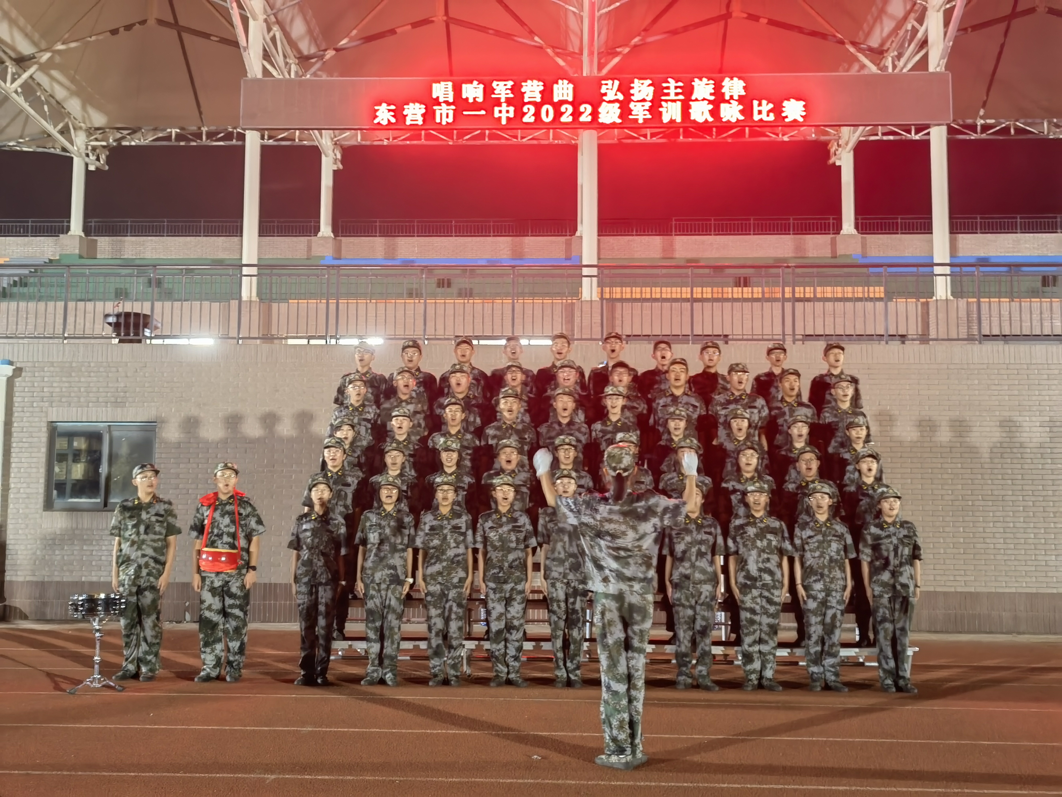 为使军训生活更加丰富多彩,27日晚,级部组织了《唱响军营曲 弘扬主旋律》歌咏比赛。伴着铿锵的步伐,有序的出场,比赛正式拉开帷幕。各参赛连队精心准备,形式多样,用饱满的精神、嘹亮的歌声,激情演绎着2022级新生们对新的学生生活的憧憬,以及对祖国人民的真挚情感和美好祝愿。音乐组何志伟、刘昌明、张珊珊、苟蕾蕾、赵思宁五位老师担任评委,现场评选出特等奖一名、一等奖五名、二等奖五名。