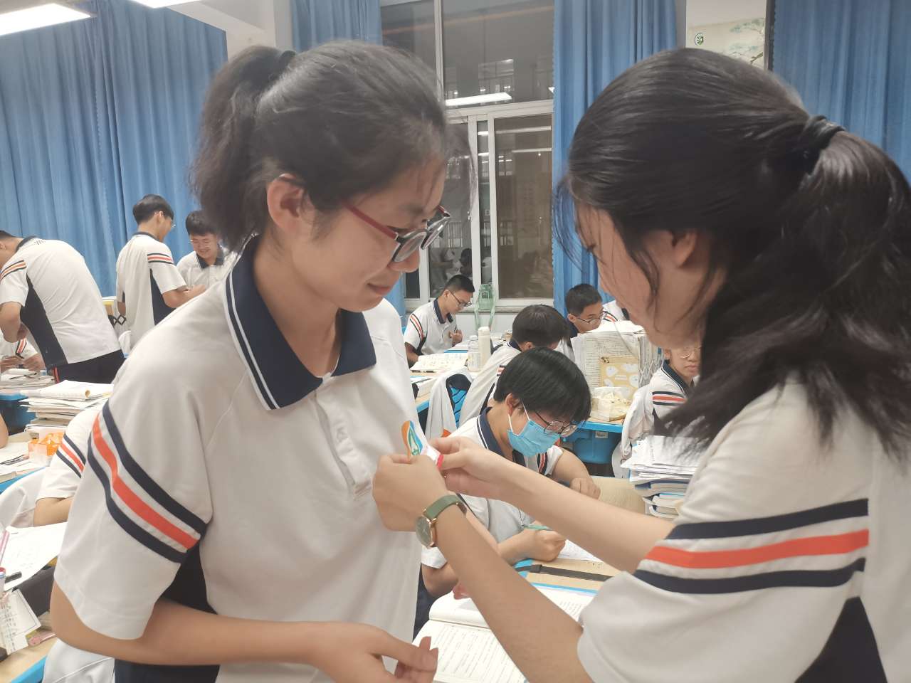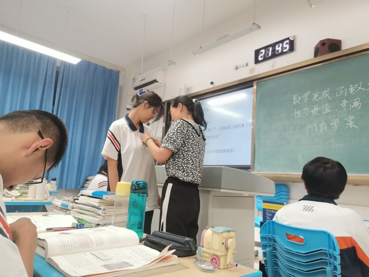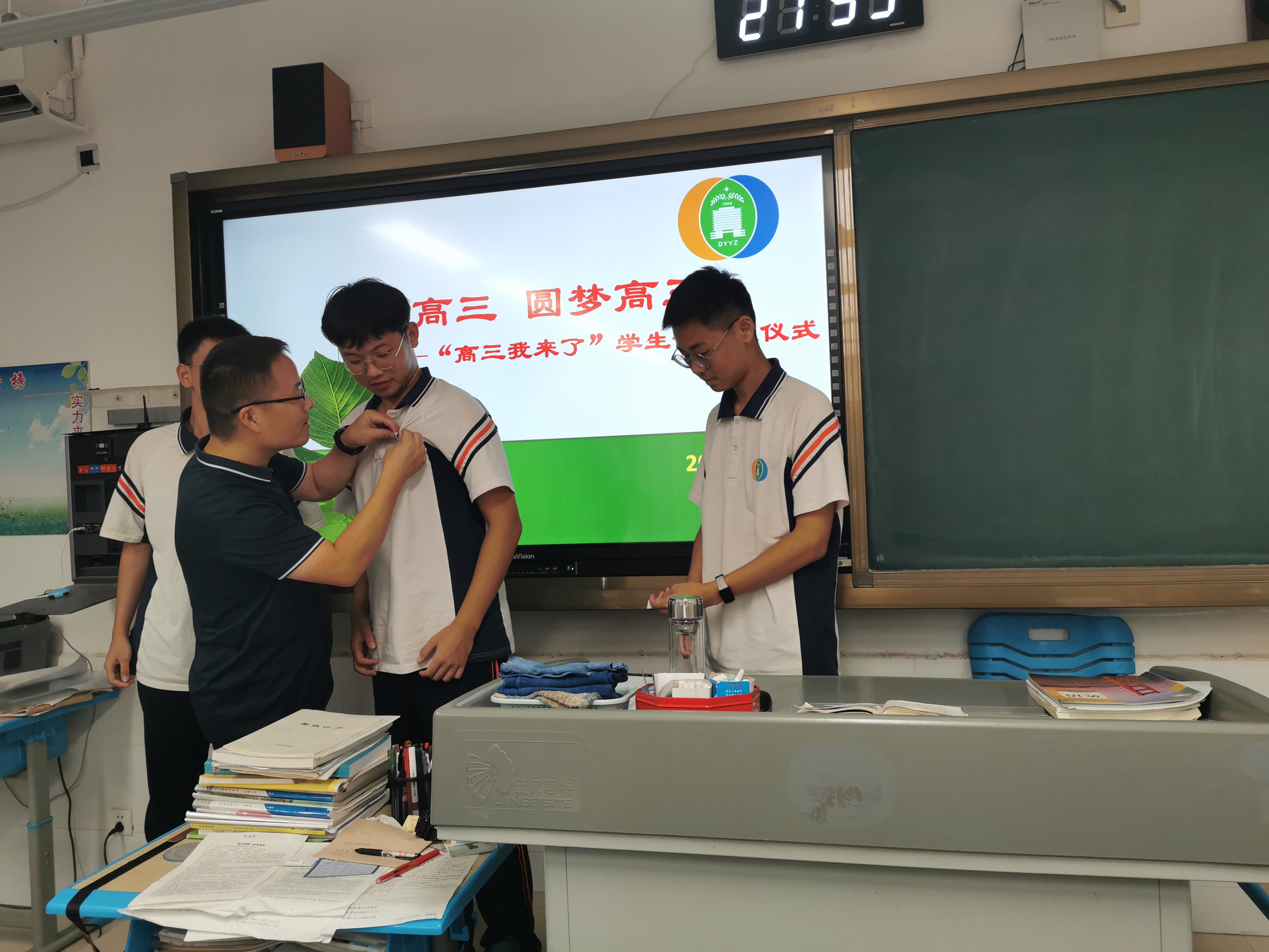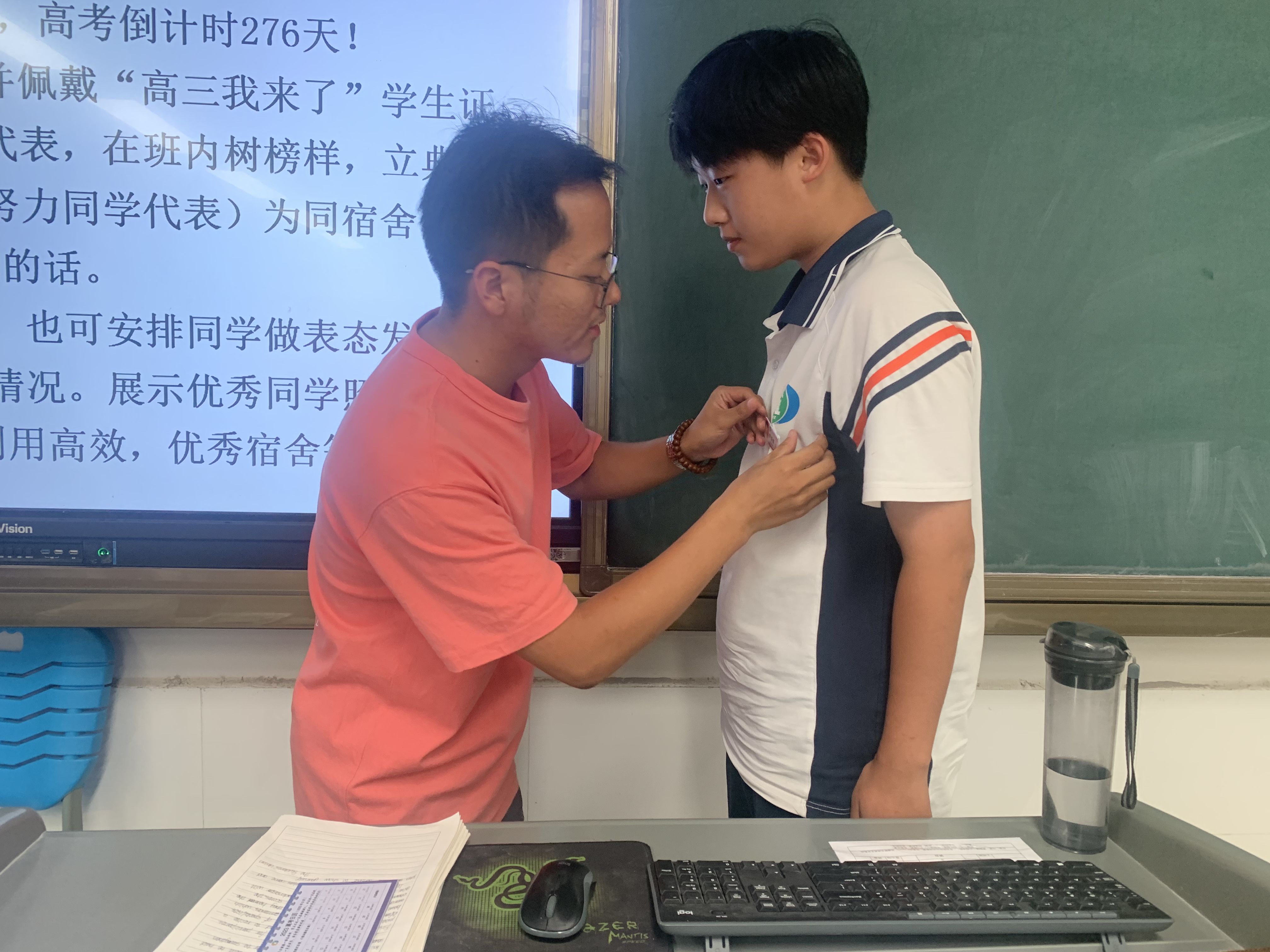 活动伊始,各班班主任老师为每位同学发放高考倒计时日历表,激励同学们珍惜时光,提升学习效率。接着班主任老师为班级优秀学生代表佩戴2020级部为每位同学定制的“高三我来了”学生证。崭新的学生证上面的“少年莫忘凌云志,曾许人间第一流”激励着每位同学奋勇争先。宿舍长为同宿舍同学佩戴新学生证,并送上鼓舞激励的话语。