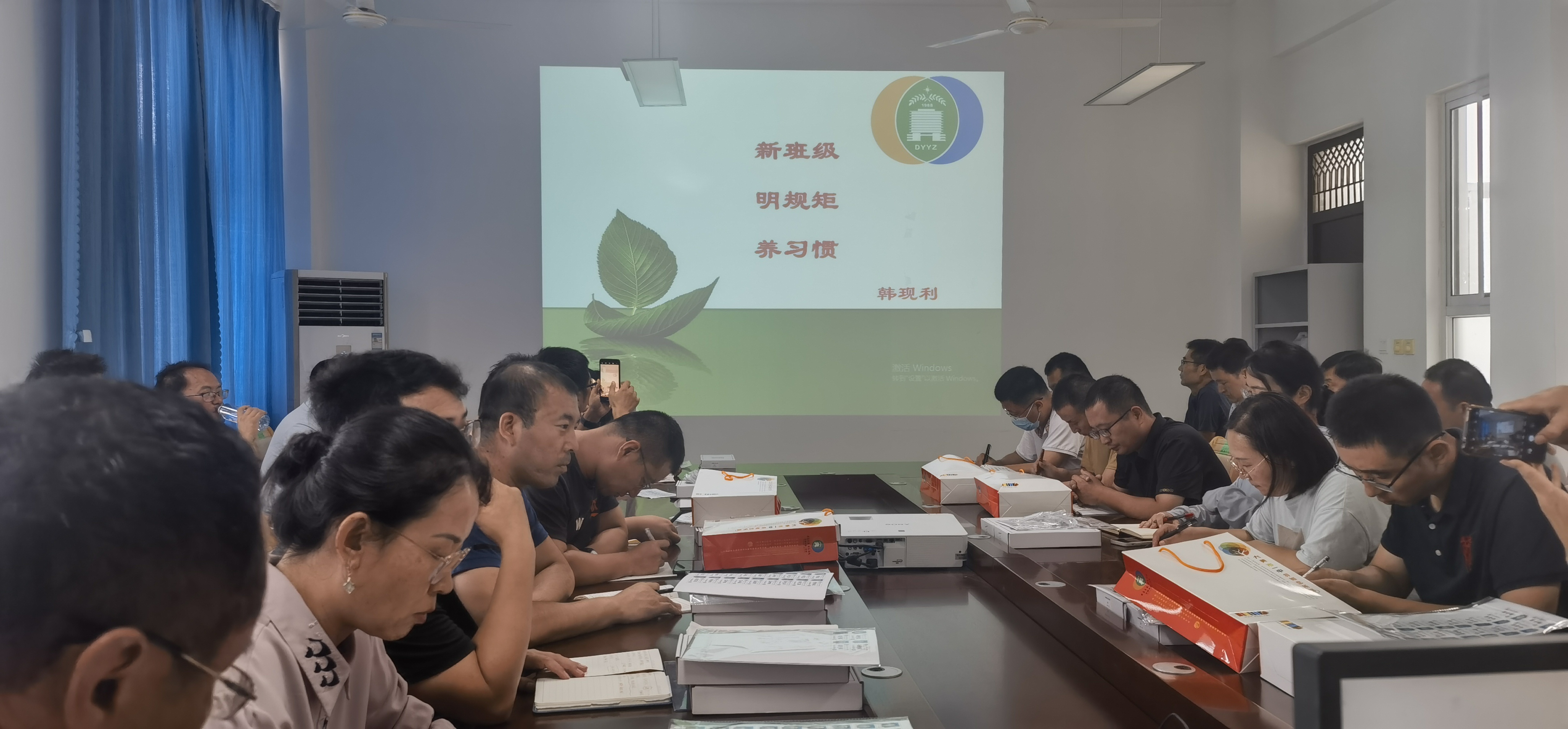 9月12日,级部召开第一次班主任微论坛活动,韩现利老师做了题为《新班级 明规矩 养习惯》的报告,韩老师从细化班内信息、组建临时的班委队伍、特殊学生的信息摸底、培养学生的生活与学习习惯、关键节点的盯靠、团队合作等几个方面展开分析,强调了习惯养成的重要性。