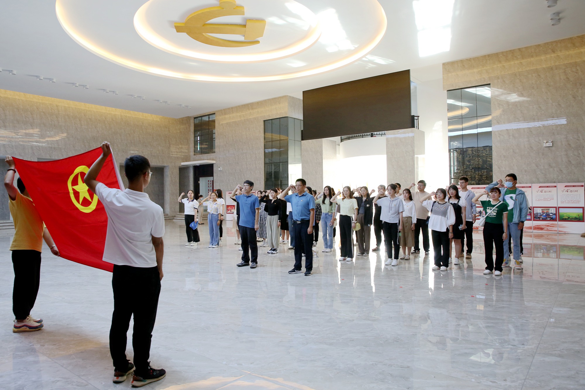 最后,青年教师们一行走进渤海垦区革命纪念馆,深刻缅怀垦区一代代伟人的丰功伟绩,感悟老一辈革命家的艰苦奋斗、心系群众的崇高品格。也值“九一八纪念日”当天,广大青年教师在纪念馆,面对团旗,在学校团委书记丁子勇、教工团支部书记丁景华的带领下,重温入团誓词,铿锵誓言响彻上空,显示了一中青年教师的蓬勃力量。