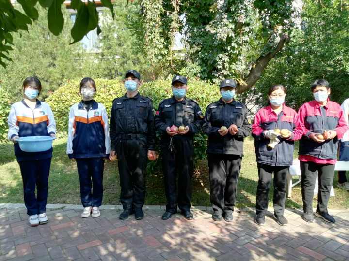 同学们又把秋果送给了绿化工人、保洁阿姨、保安师傅和食堂工人,感谢他们为整洁美丽、和谐平安的校园和美味可口的食堂饭菜所付出的辛勤劳动。