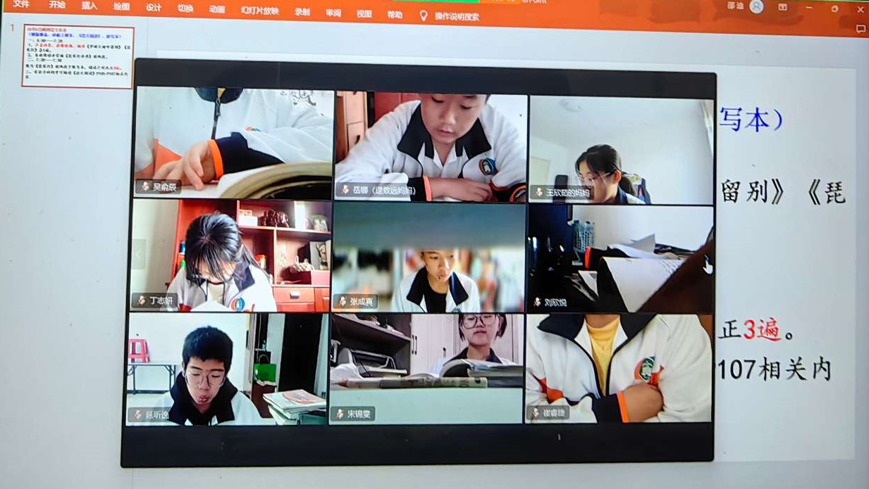 线上课堂有条不紊,依靠的是班主任们的一马当先。为了让学生真正把线上课堂落到实处有所收获,班主任老师付出了很多。从清晨线上盯早读,到晚上线上盯晚自习,班主任们无时无刻不在监督。发布打卡任务,开摄像头盯现场,私聊,打电话,为了保证学习的效率和状态,班主任们可以说是准备了十八般技艺,甚至包括了兼职体育老师和心理辅导老师。