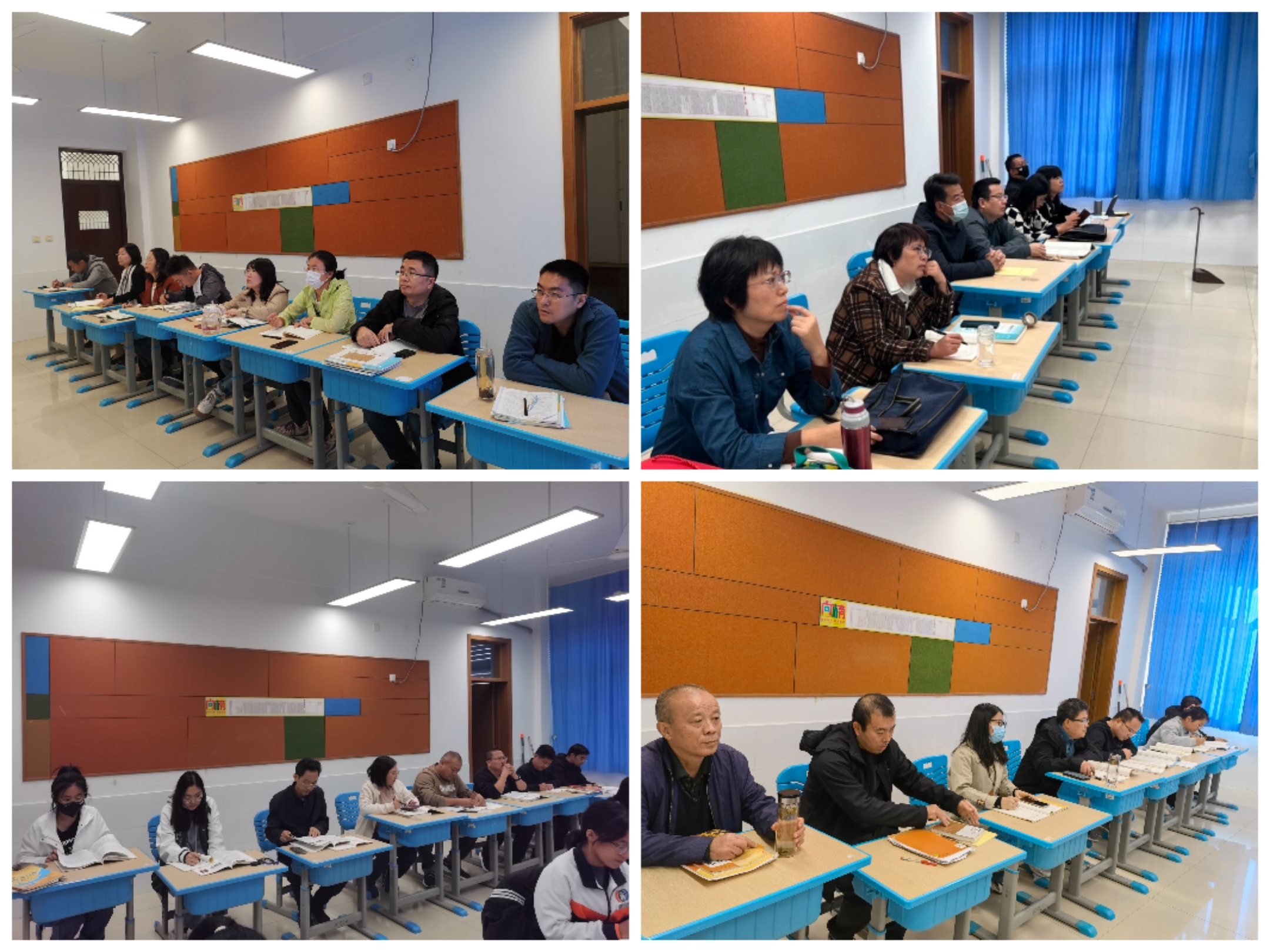 更为难能可贵的是,2022级的年轻教师们在没有任何人安排的情况下,主动到授课现场进行听课学习。他们和求知若渴的学生一样,认真听讲,认真记笔记,求得成长。慢慢地,他们带动越来越多的人加入他们,既给学生们做了一个好榜样,更激励授课老师以更高的热情和标准投入课堂,取得了双赢了成果。