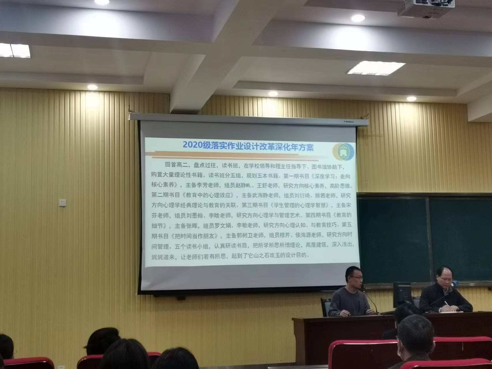 10月10日,2020级部举行了读书班第二期开班仪式,教学促进中心宋振老师主持了会议。宋老师公布了第二期读书班的分组和研究课题。读书班将以学校作业设计改革为中心,以充分发挥作业教学的巩固、导向、反馈、评价功能为指导思想,研读书籍为作业设计提供理论指导。