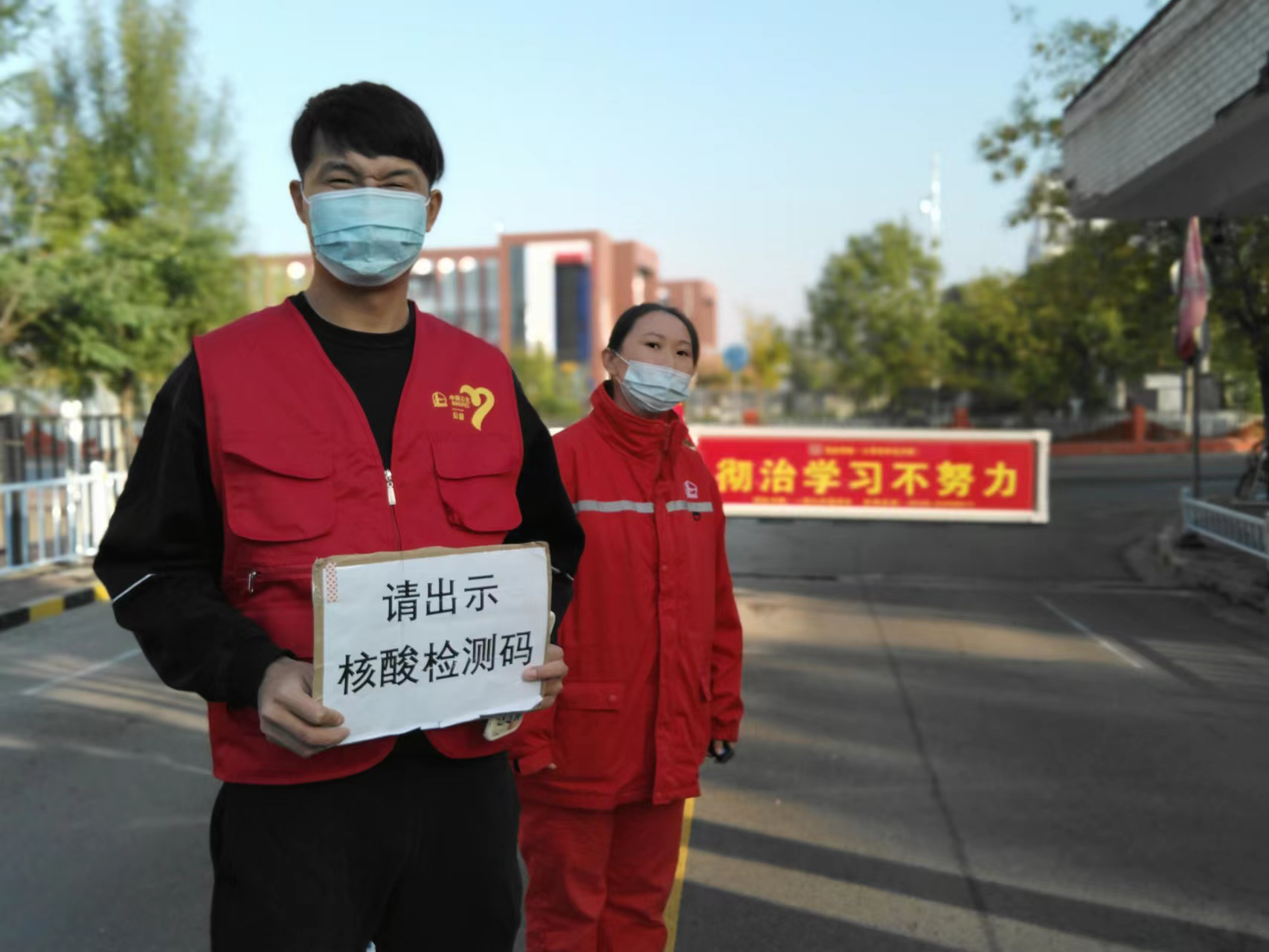 “您好,请出示一下健康码和行程码”“请佩戴好口罩”“您好,今天的核酸做了吗?标识看一下” ,这是他近几天说的最多话。帮助年事稍高的老人操作手机,讲解疫情防控的重要性与必要性等等,都是他社区志愿服务的一部分。每一件事情都不大,但却是他为防控疫情做出的尝试与努力。疫情给予了他不一样的人生经历,也在这样一个特殊的时刻展现了他心底的温暖与爱。