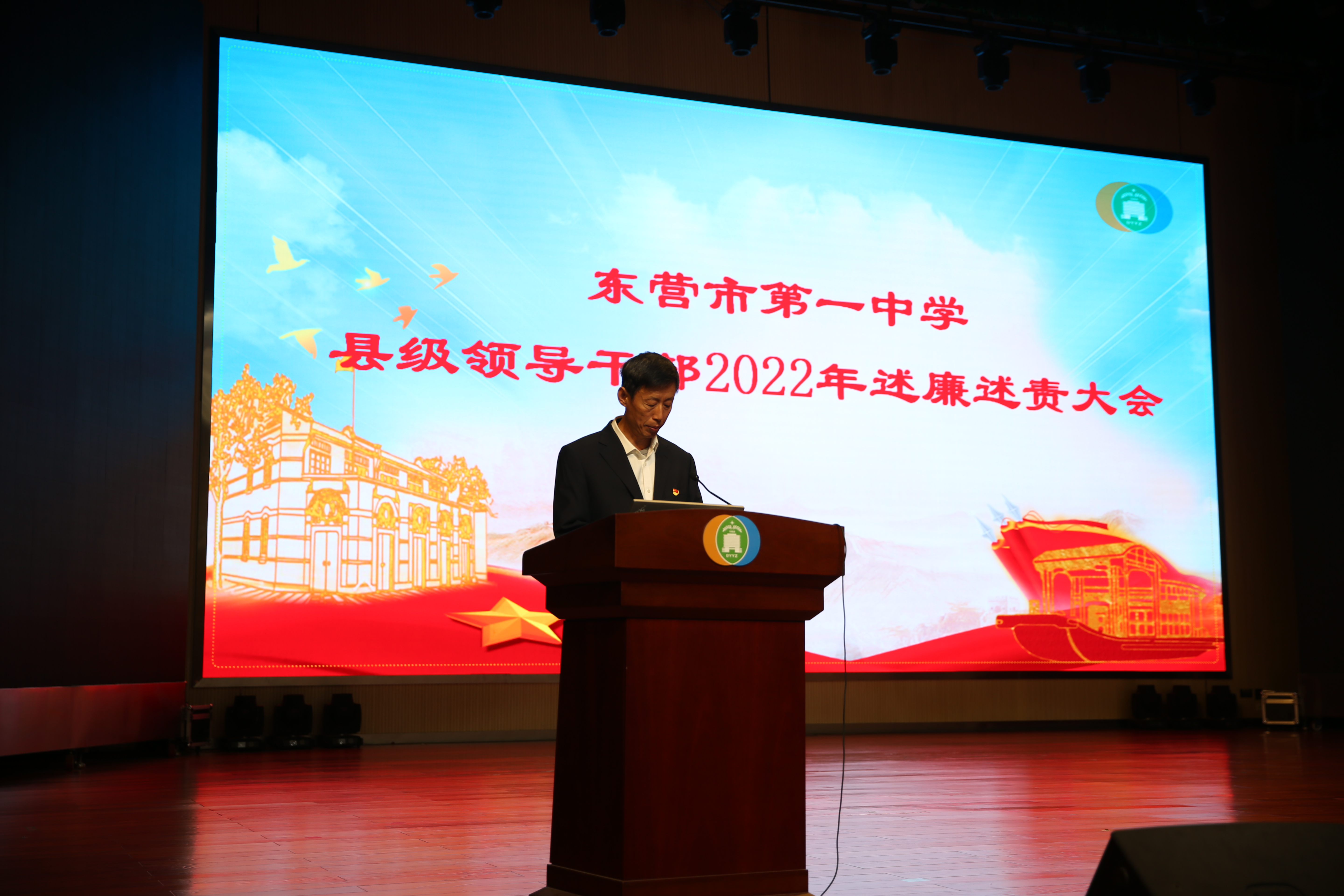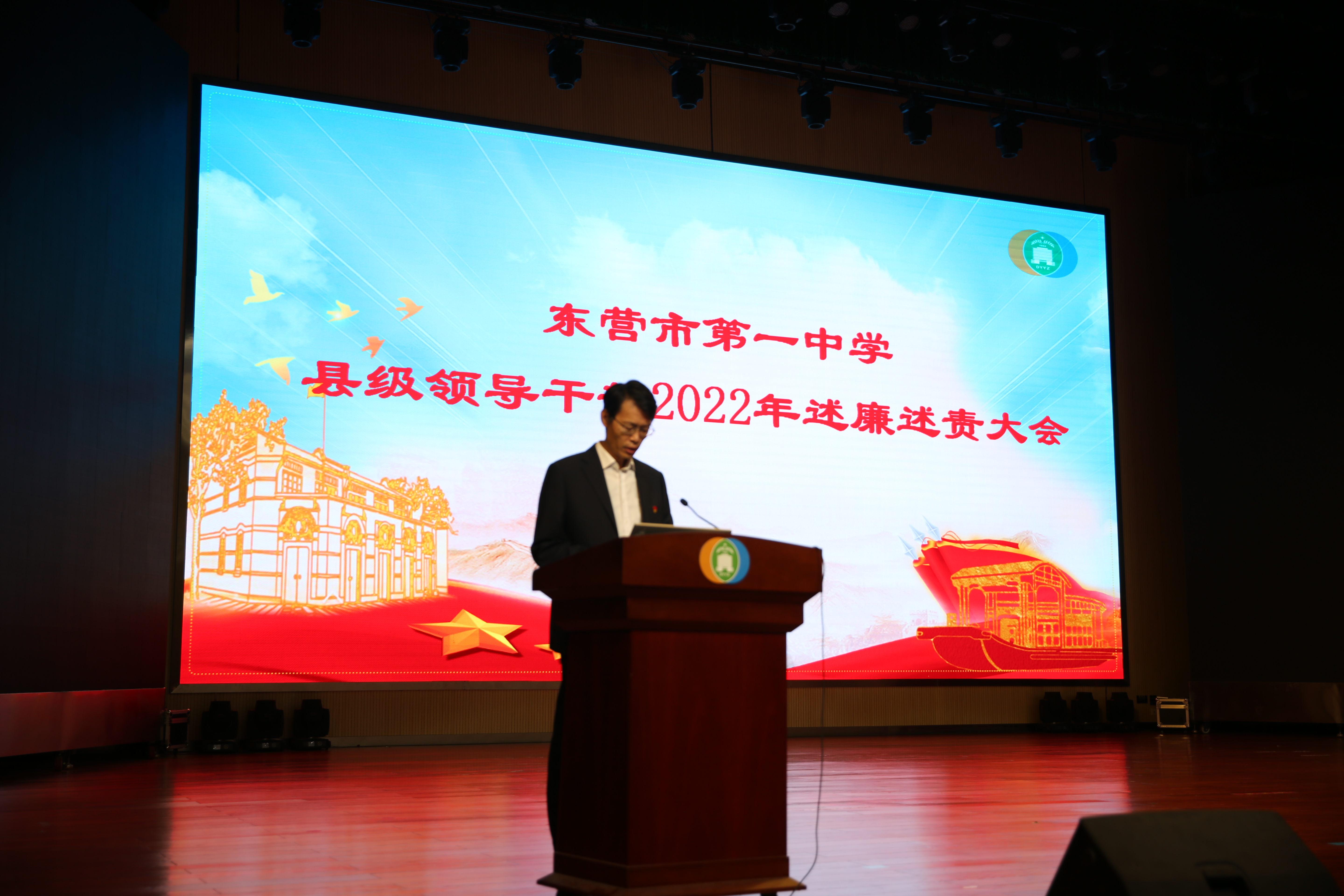 为进一步加强对党员领导干部的监督,推动党风廉政建设党委主体责任和纪委监督责任的落实,东营市第一中学2022年党员领导干部述廉述责会议于10月16日在学校大礼堂召开。