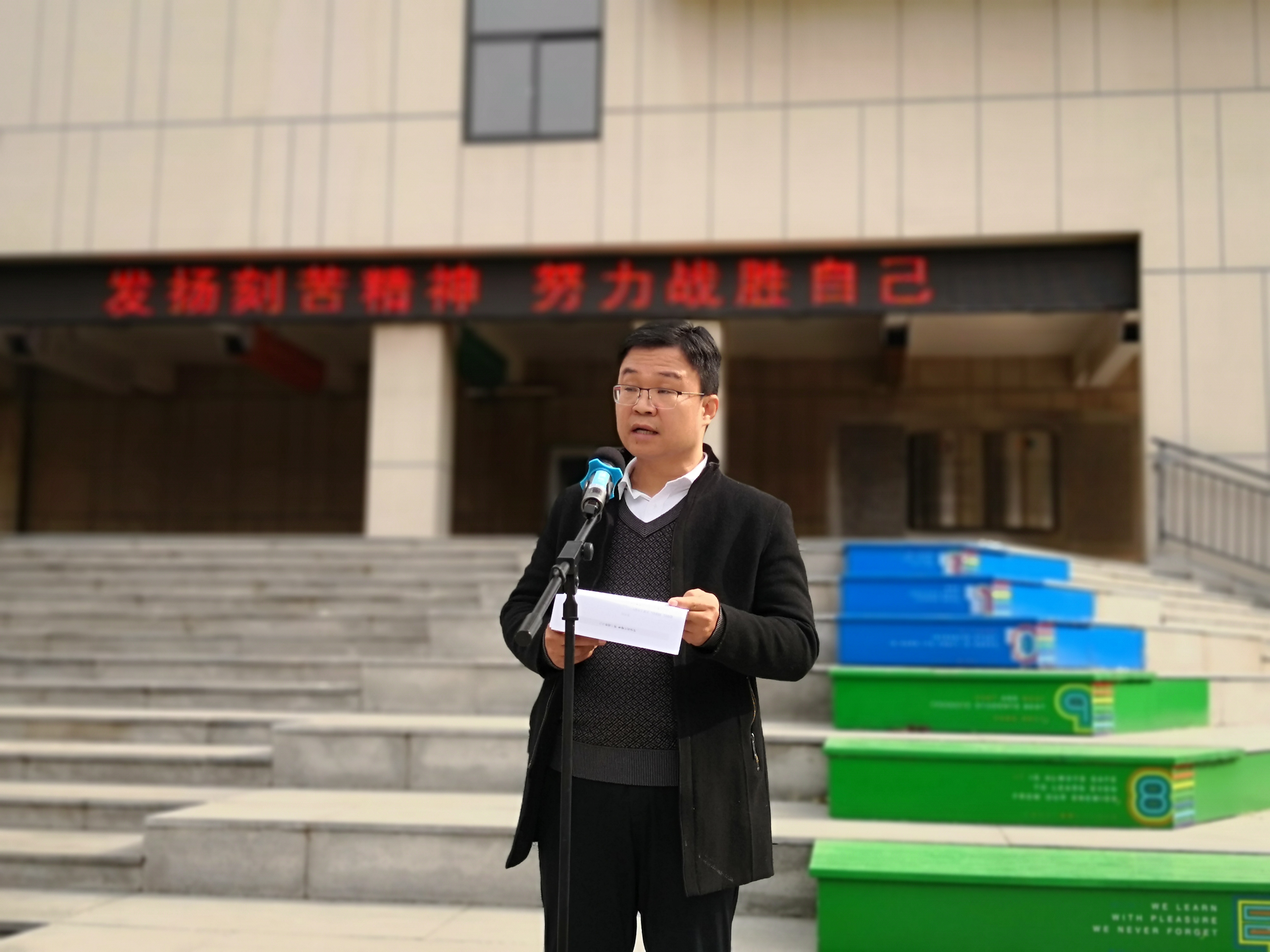 高二级部主任李兴民做了动员讲话。李主任以长津湖的精神为切入点,告诉同学们要经受住一次又一次的考验,跨过一个又一个的艰难险阻,一往无前,永不退缩。李主任指出高二是承上启下的阶段,也是关键的一年,战胜了自己,做好了自己,翻过一山再登一峰,跨过一沟再越一壑,定会成为最棒的自己!