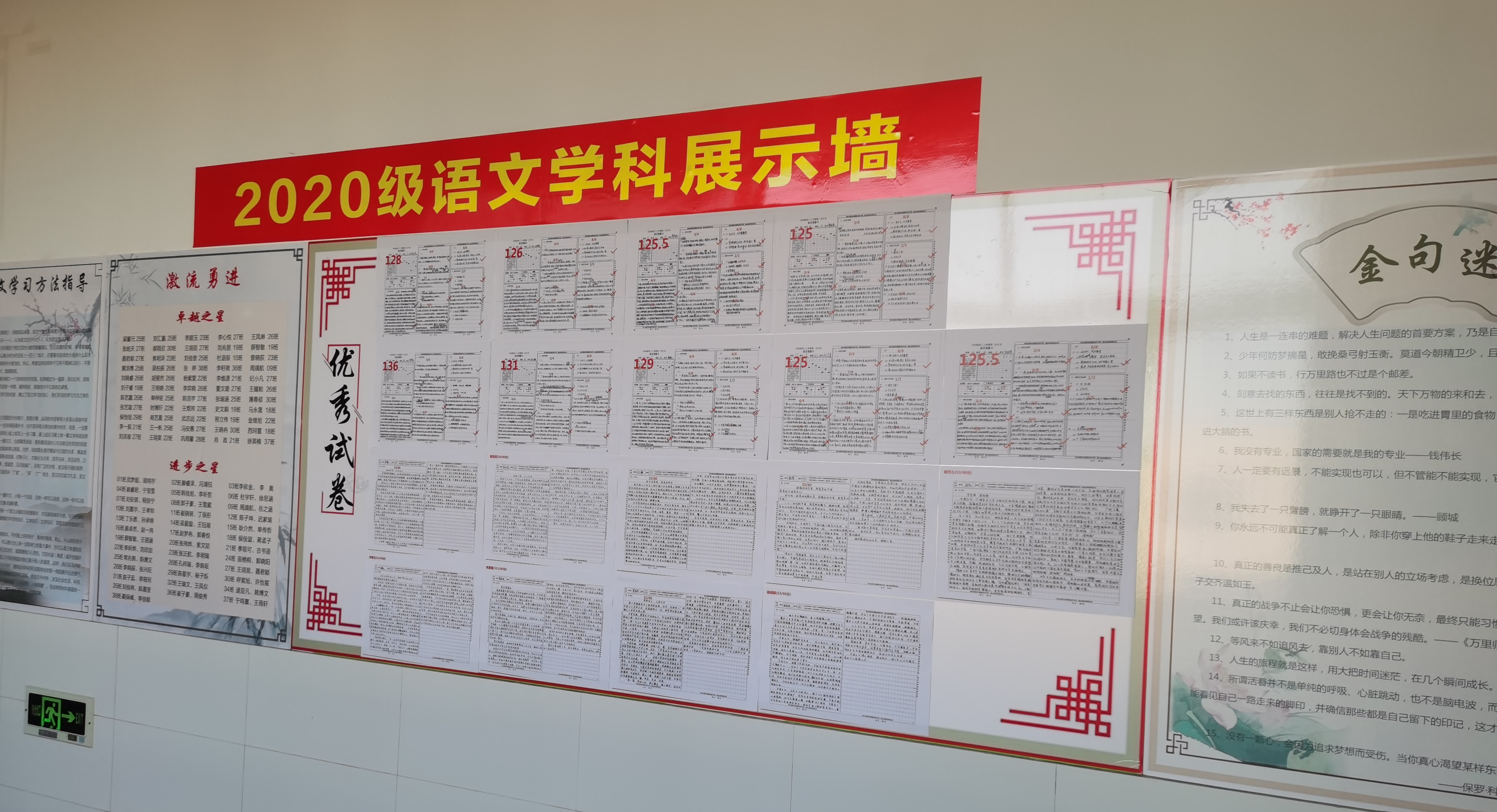 时时是教育之时,处处是教育之地。2020级部学科文化墙不是简单的装饰,而是育人的有效载体。把走廊文化布置作为学校文化建设的一个突破口,既营造了浓郁的校园文化氛围,更创设了良好的育人环境。