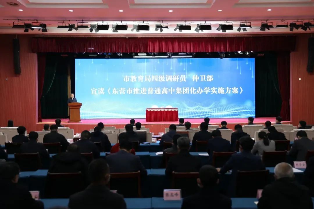 仪式由垦利区委副书记、区长解洪涛主持,市教育局四级调研员仲卫部宣读了《东营市推进普通高中集团化办学实施方案》。