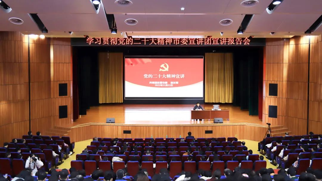 在宣讲中,徐长青结合生动的案例、丰富的史实,从党的二十大的主题和主要成果、过去5年的工作和新时代10年的伟大变革、马克思主义中国化时代化、中国式现代化、全面建设社会主义现代化国家的目标任务、坚持党的全面领导和全面从严治党、应对风险挑战,以及报告中对青年的关怀与期望等方面,结合高水平现代化强市建设新局面,对党的二十大精神作了系统梳理和深入阐释。