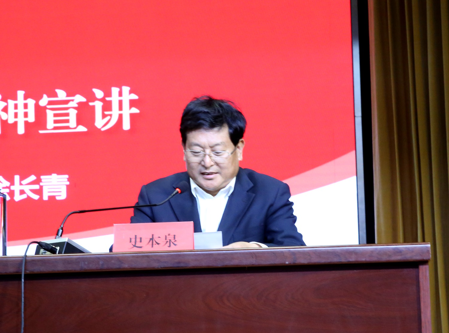 市一中党委书记、校长史本泉主持宣讲报告会。