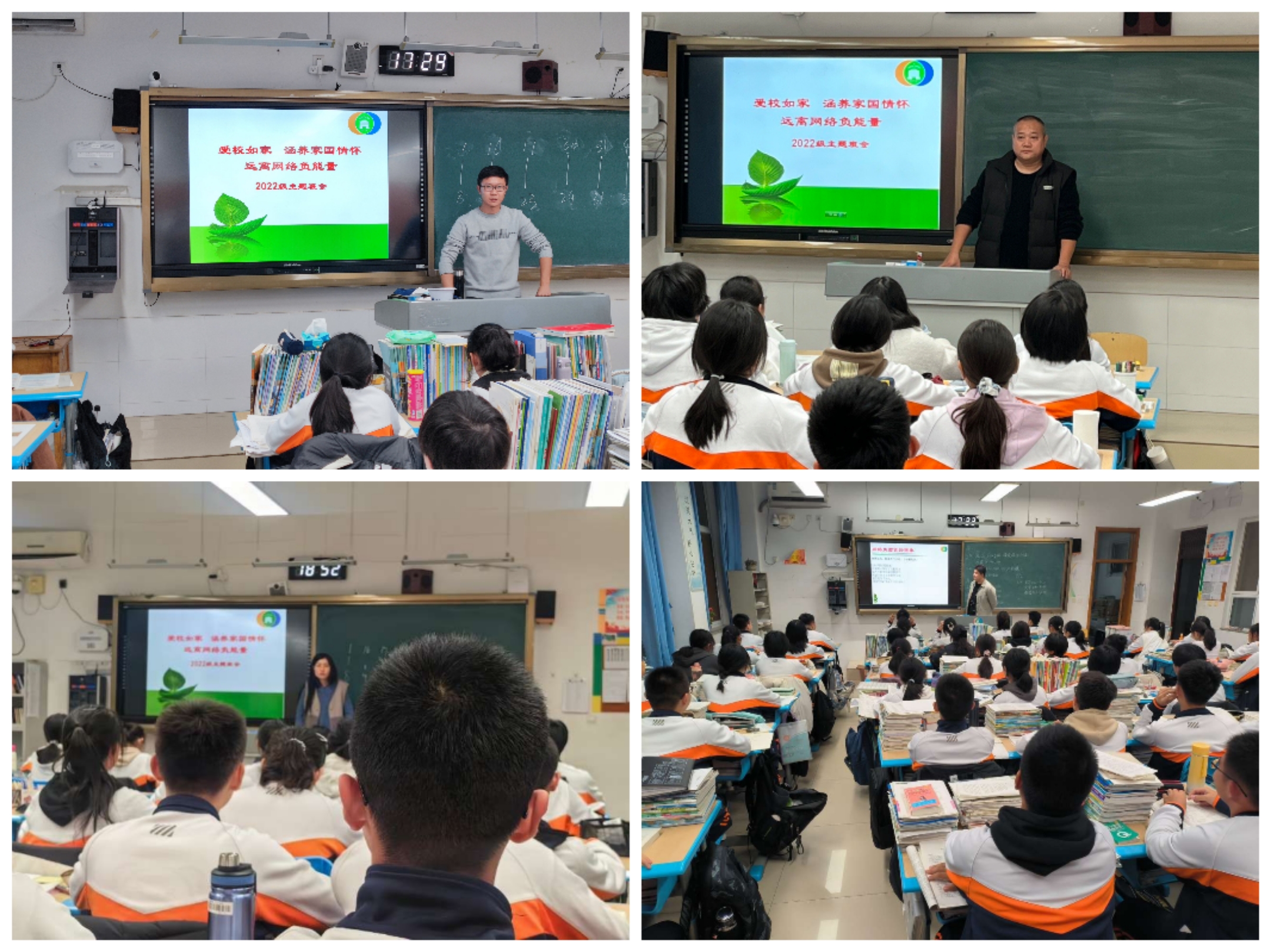 为了让学生明辨是非,懂法守法,修养精神,一心向阳,11月20日晚2022级部召开“爱校如家,涵养家国情怀,远离网络负能量”主题班会。