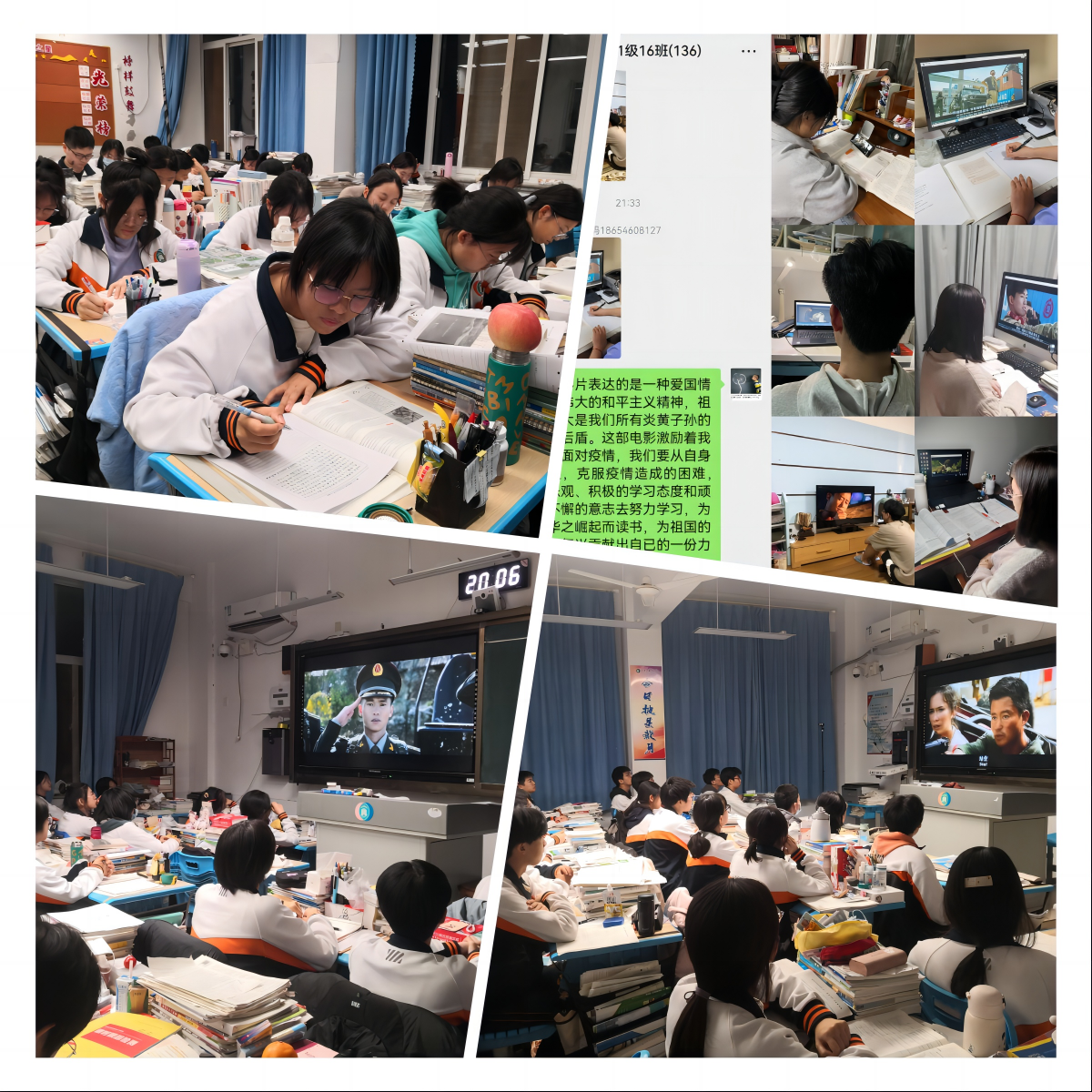 影片向世界展示了中国军人“一日为战狼,终身为战狼”的铮铮铁骨,在观影过程中极大地唤醒了同学们的爱国主义热情,精彩处赢得了阵阵掌声。观影结束后,同学们的观后感写的认真、深刻。有的同学写到:这是第二次观看,再次点燃了我的爱国热情,更加感受到了“犯我中华者,虽远必诛”这几个铿锵有力且极具血性的爱国信仰的大字的无穷魅力。有的同学写到:影片的结尾激起了我内心强烈的民族荣誉感和自豪感,有我们伟大祖国的保护,在这场疫情封控中我不再害怕。还有的同学说:我一定用战狼的精神鼓舞自己,战胜我的懦弱,封校,我不怕。
