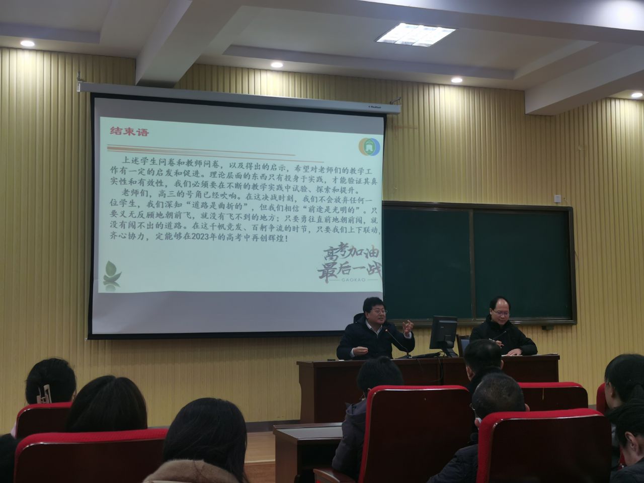 史校长高度赞扬了两位老师的精彩汇报,并对高三备考做了精准指导,对全体教师提出了殷切希望。2020级部所有师生将秉持终身学习的理念,不断丰富自我、钻研教学,齐心协力,争取2023年高考再创辉煌!