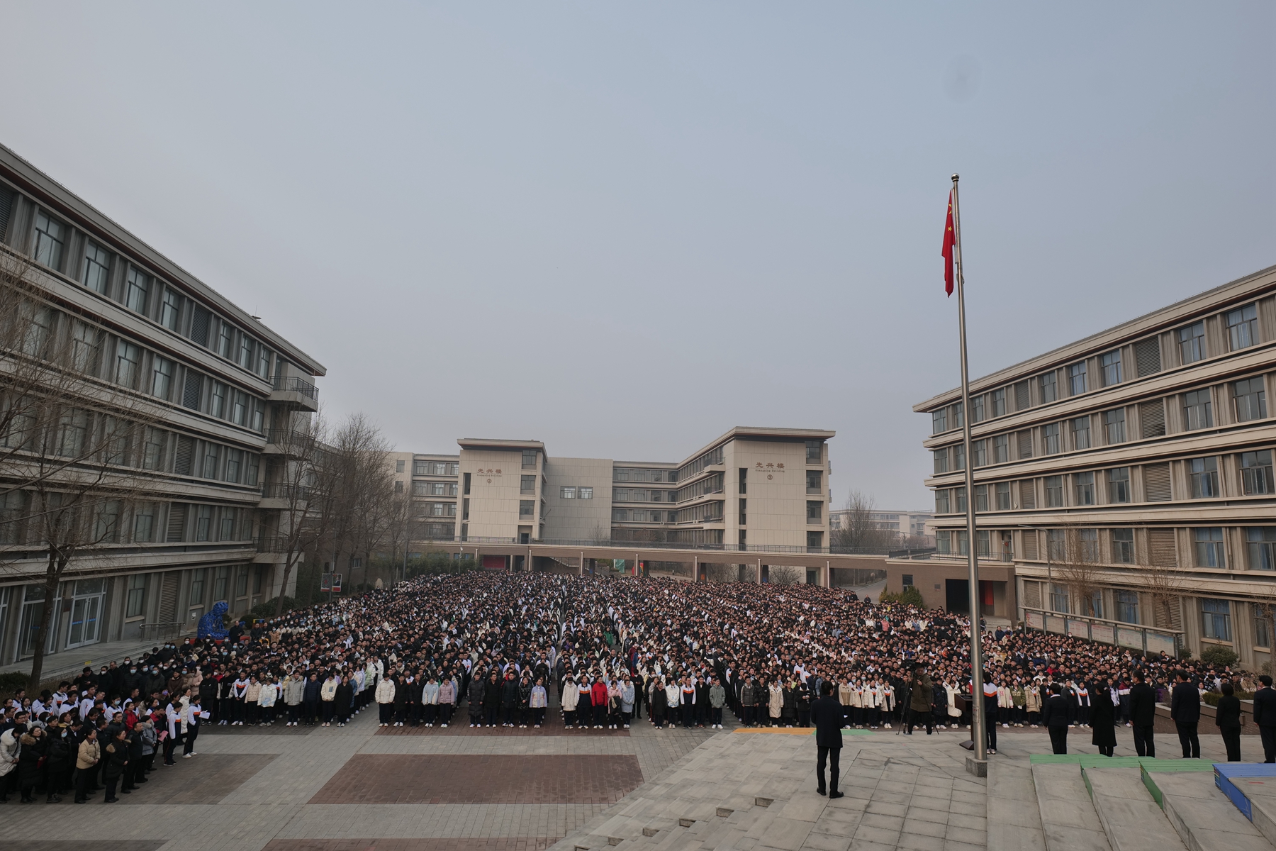 2月7日上午9:30,市一中全体师生齐聚升旗广场,举行2022—2023学年第二学期开学典礼。学校党委书记、校长史本泉出席典礼并发表讲话。