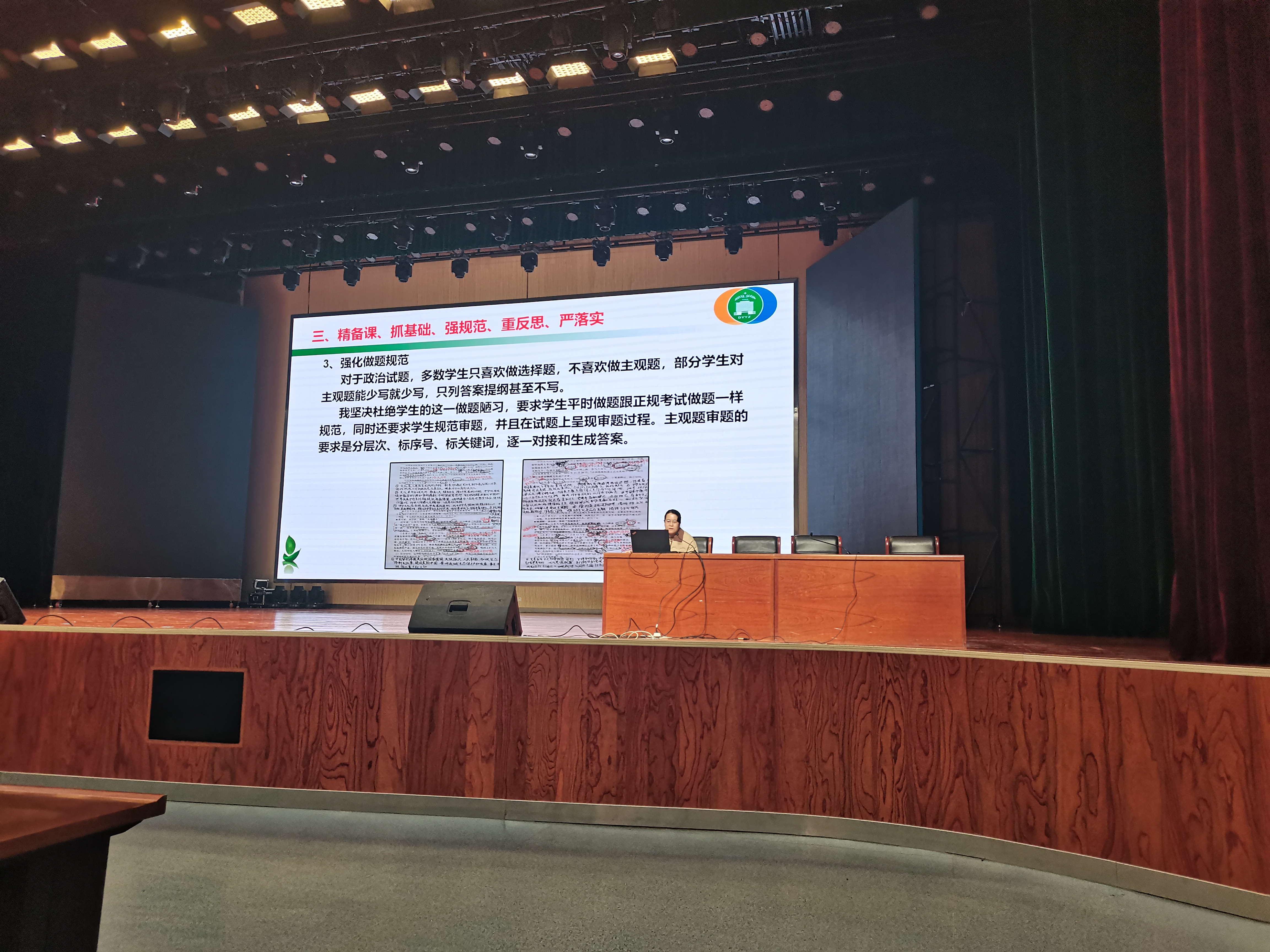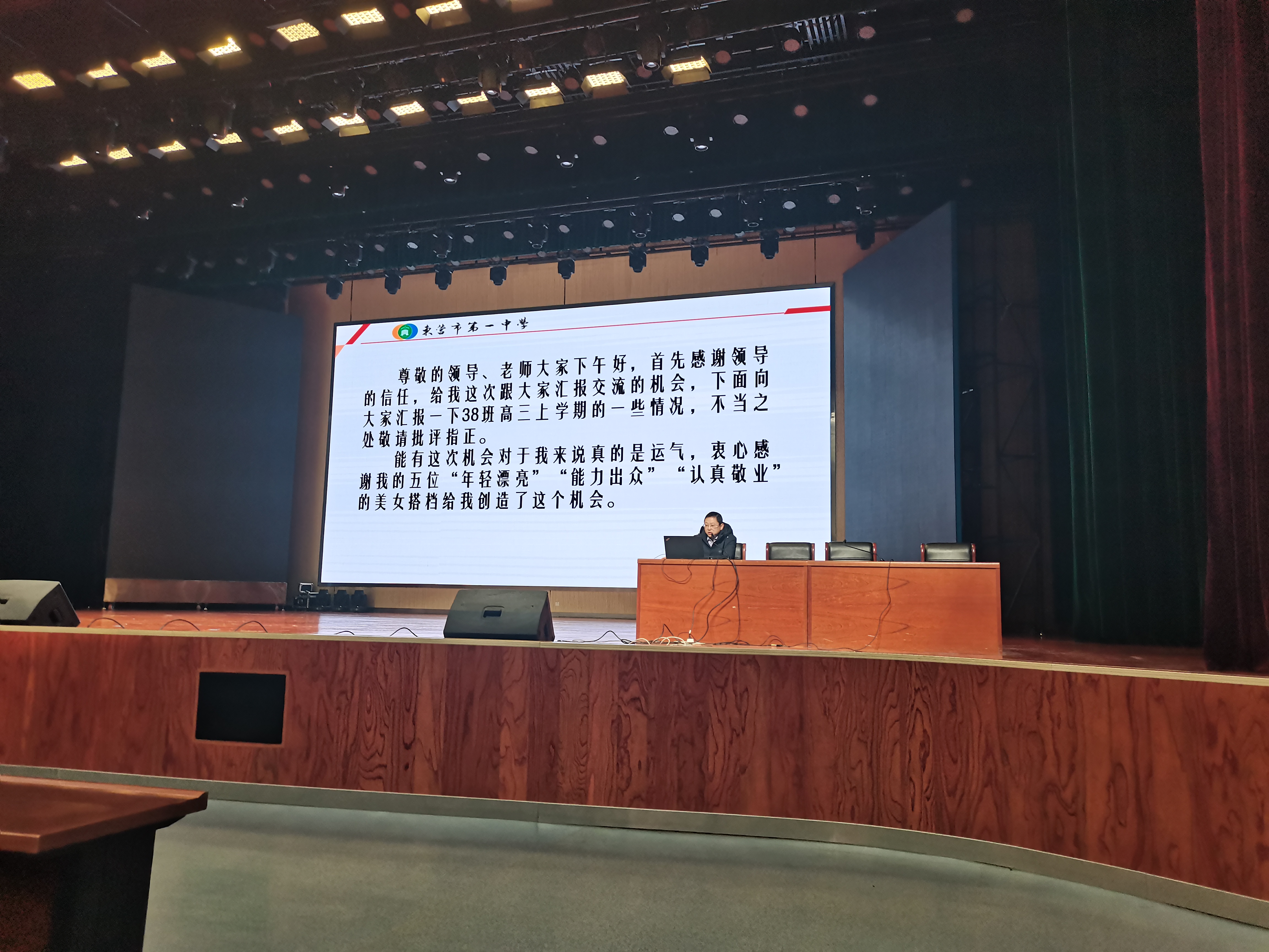 高三第一学期增量优胜班级班主任张会海、焦玉金老师、增量优胜教师罗文娟、罗丽芳老师、优秀学科组组长王舒老师在会上做工作汇报。张会海、焦玉金两位班主任老师分享了班级管理历程、常规措施、创新工作。罗文娟、罗丽芳两位教师分享了精备课、抓基础、强规范、重反思、严落实的教学经验。王舒老师分享了高三下学期生物组的工作计划。