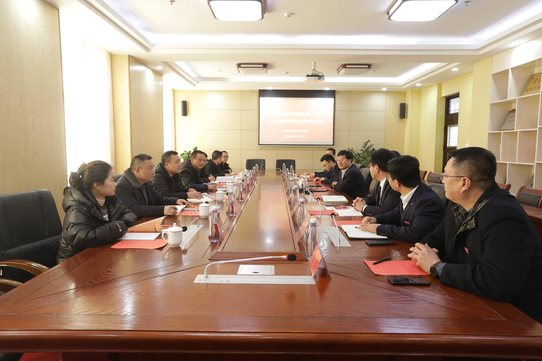 2月22日,重庆酉阳二中副校长刘建军率领学校中层领导、部分教师来到东营市一中进行研教研学。市一中党委书记、校长史本泉热情接待了来访客人,并陪同参观校园,宾主双方在会议室进行座谈。各级部、处室对此次活动进行了精心安排,确保对口学校高质量达成研习目标。