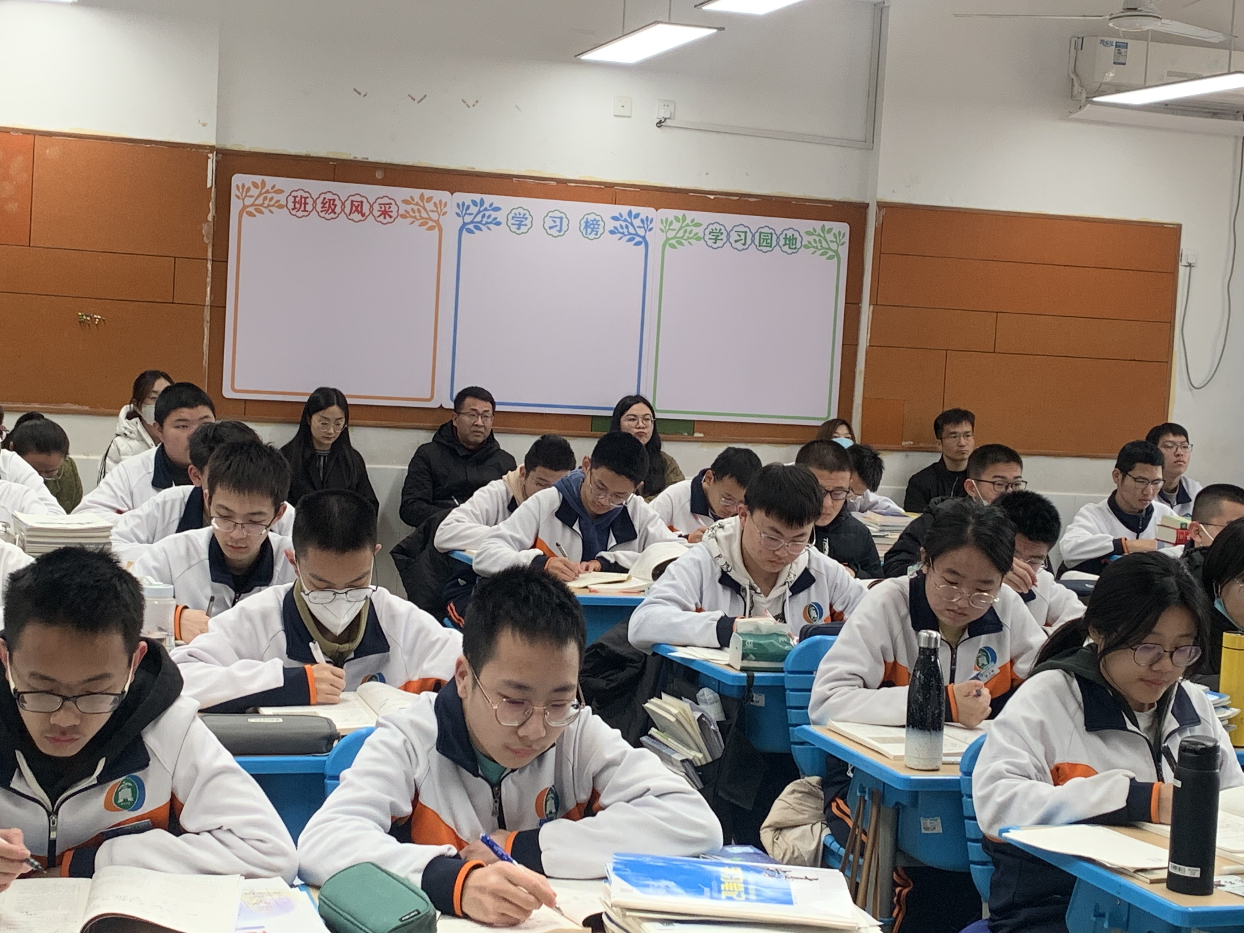 课任教师在各级部老师引导下,步入教室、录播室,就教育管理、课堂教学、教研科研、培优辅差等工作与级部老师进行深入交流探讨。老师们进校园看文化建设;进级部观课、进班级听课;进级部、处室学习交流,全方面了解年级、处室管理机制、学科建设、培优辅差等工作。