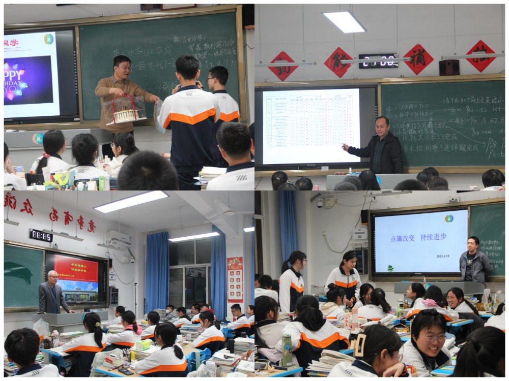 随后各班级分头召开了精彩纷呈的班会。有的班级安排了优秀学生代表发言,有的班级把班会设计成春天的诗歌朗诵会,有的班级组织了宣誓活动,有的班级通过丰富的视频引导学生积极进取。