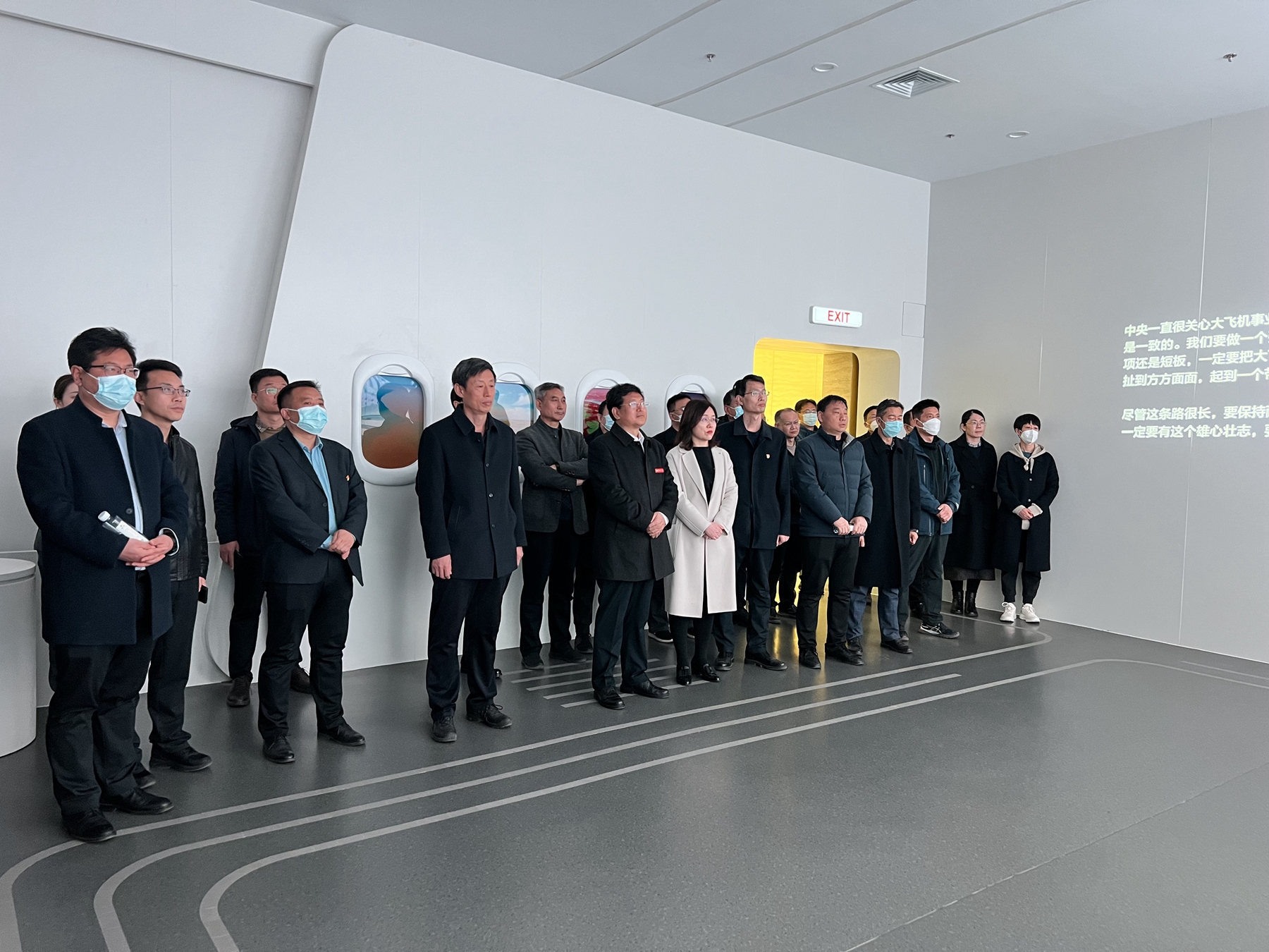 随后,参观了商飞集团展览馆、指挥中心,听取了张云起主任对中国商飞整体布局的细致讲解。在总装生产线车间,在悬挂有五星红旗和“长期奋斗、长期攻关、长期吃苦、长期奉献”的醒目标语下,大家认真听取工作人员对C919大型客机的研发、试飞历程、设计理念等方面的详细介绍,真切了解到“让中国的大飞机翱翔蓝天”的科技中国梦。