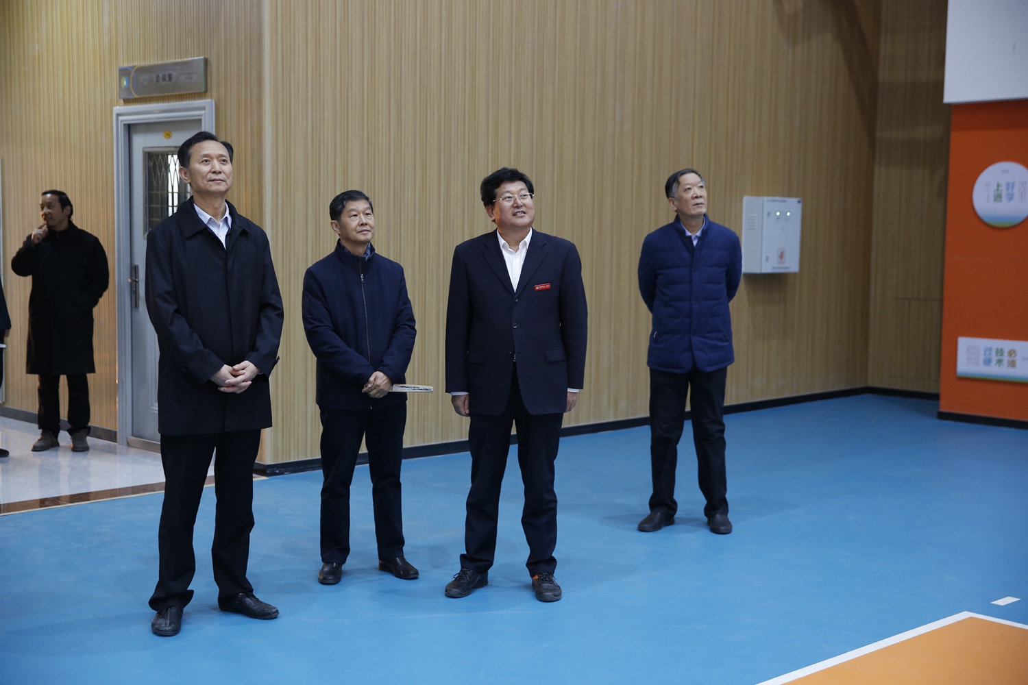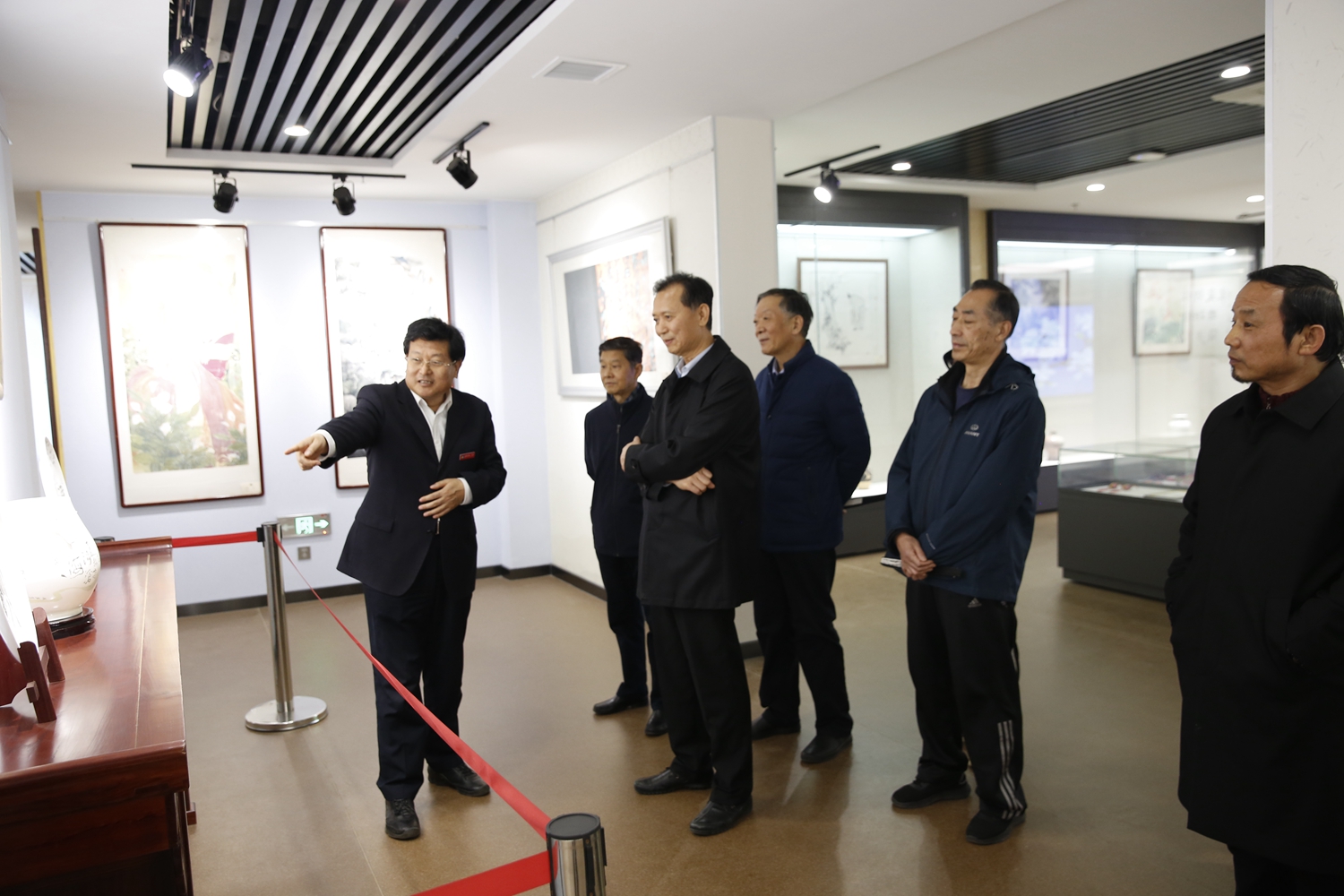 陈泽浦主任一行在史本泉校长的陪同下,参观了市一中艺术馆、美术展室、党建学馆、国际部和楹联学馆。随后乘坐电瓶车参观校园,步入游泳馆、排球馆实地了解我校各训练场馆设施建设以及运动员训练等情况。