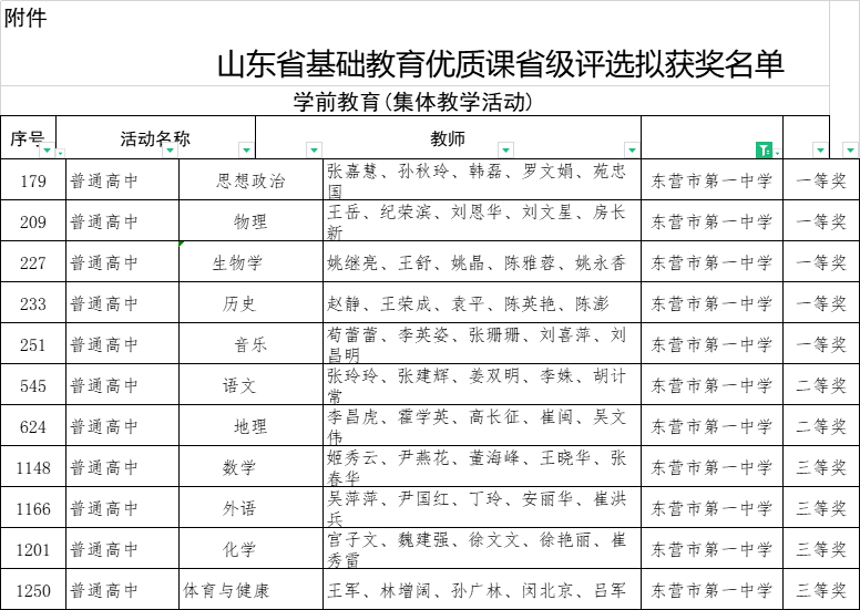 山东省教育厅公示《山东省基础教育优质课省级评选拟获奖名单》,东营市第一中学推选的11名教师荣登金榜。