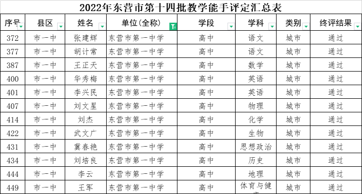 喜报|市一中12名教师当选东营市第十四批教学能手