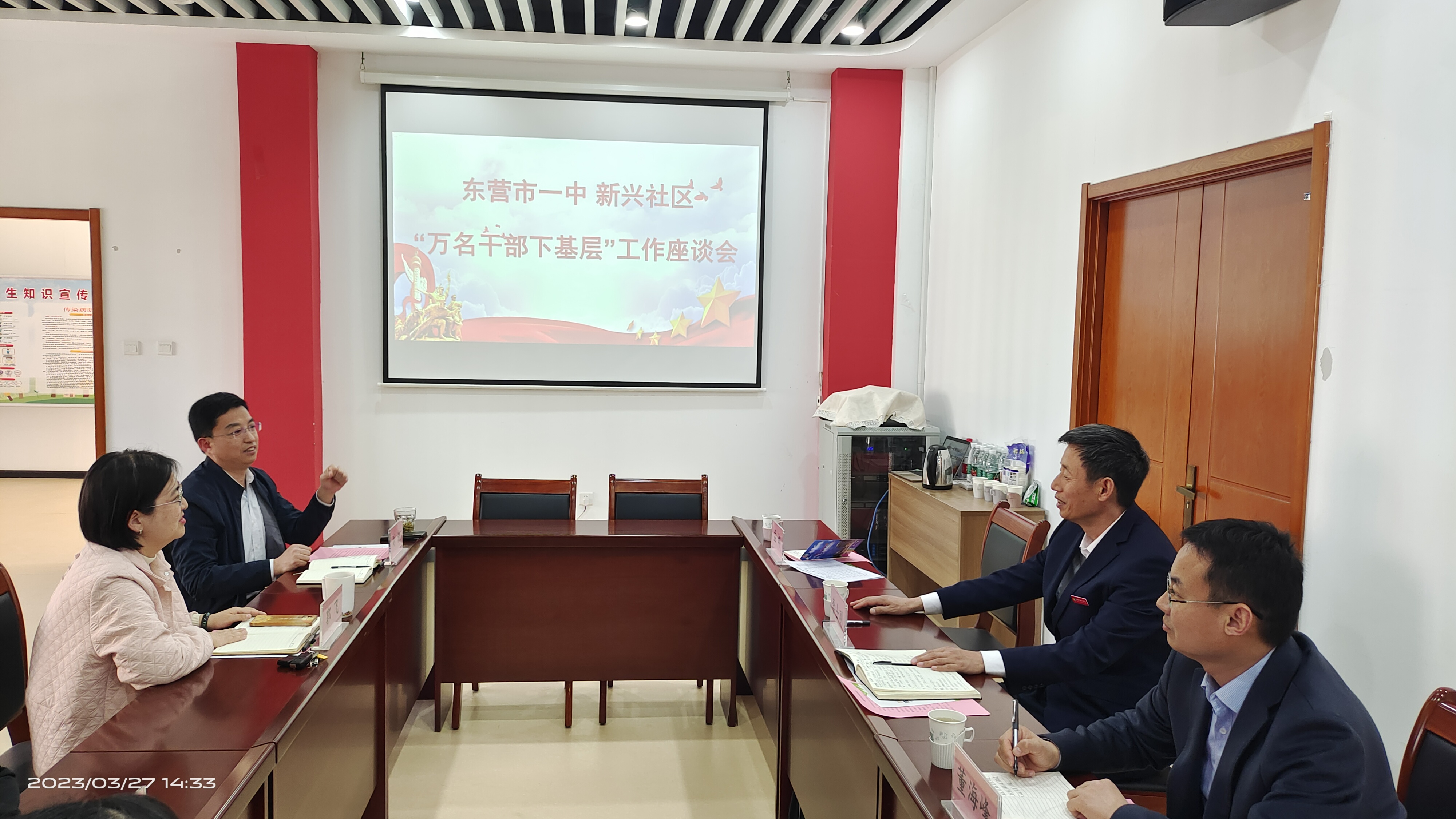3月27日,东营市第一中学党委委员、副校长李士刚、学管处主任董海峰组织带领相关教师,到新兴社区与郭飞主任、刘渤书记以及网格员就今后计划开展的工作进行了交流座谈。同时,制定了关于党建学习、中高考政策解读、走访困难居民等工作计划。