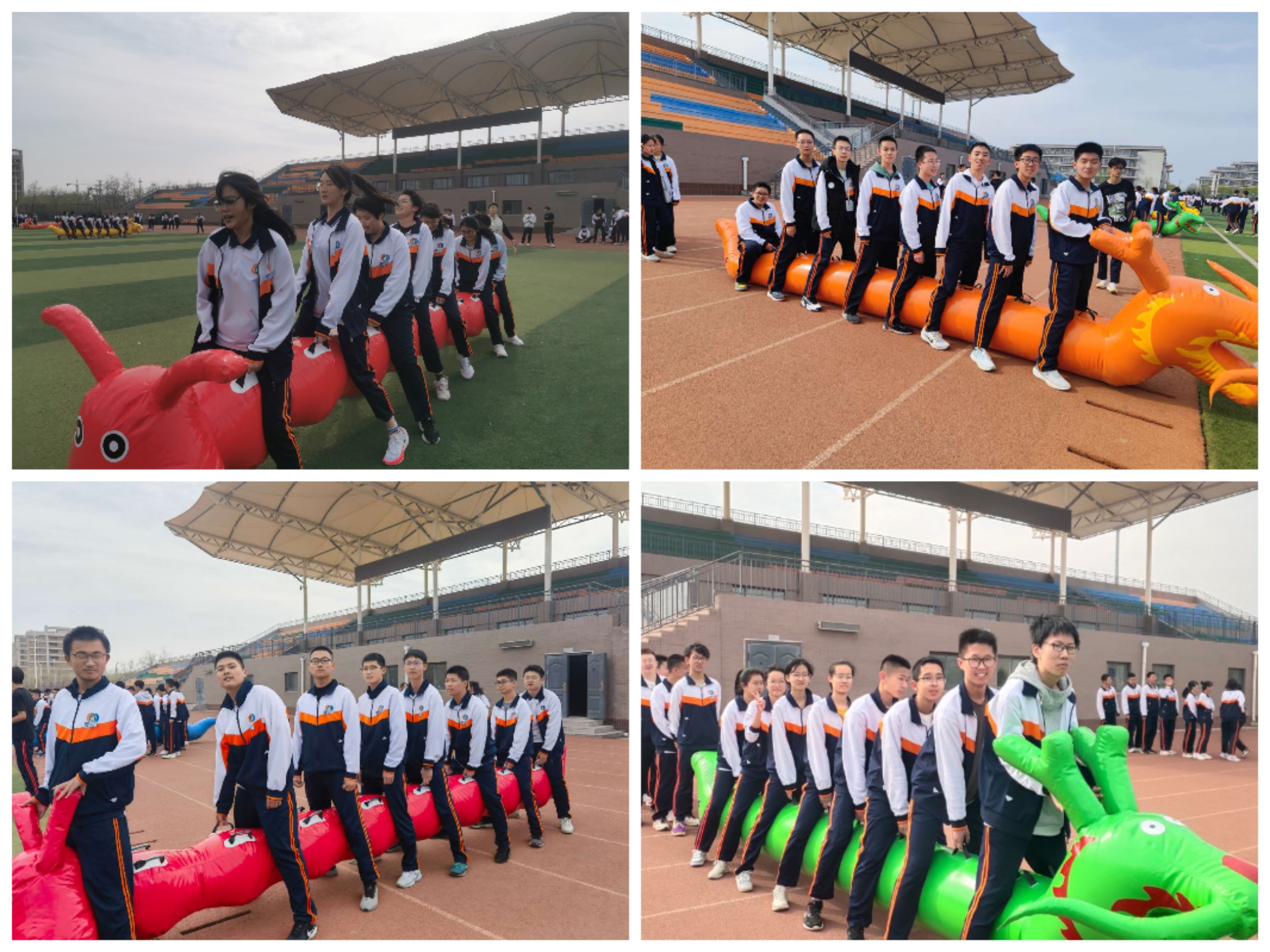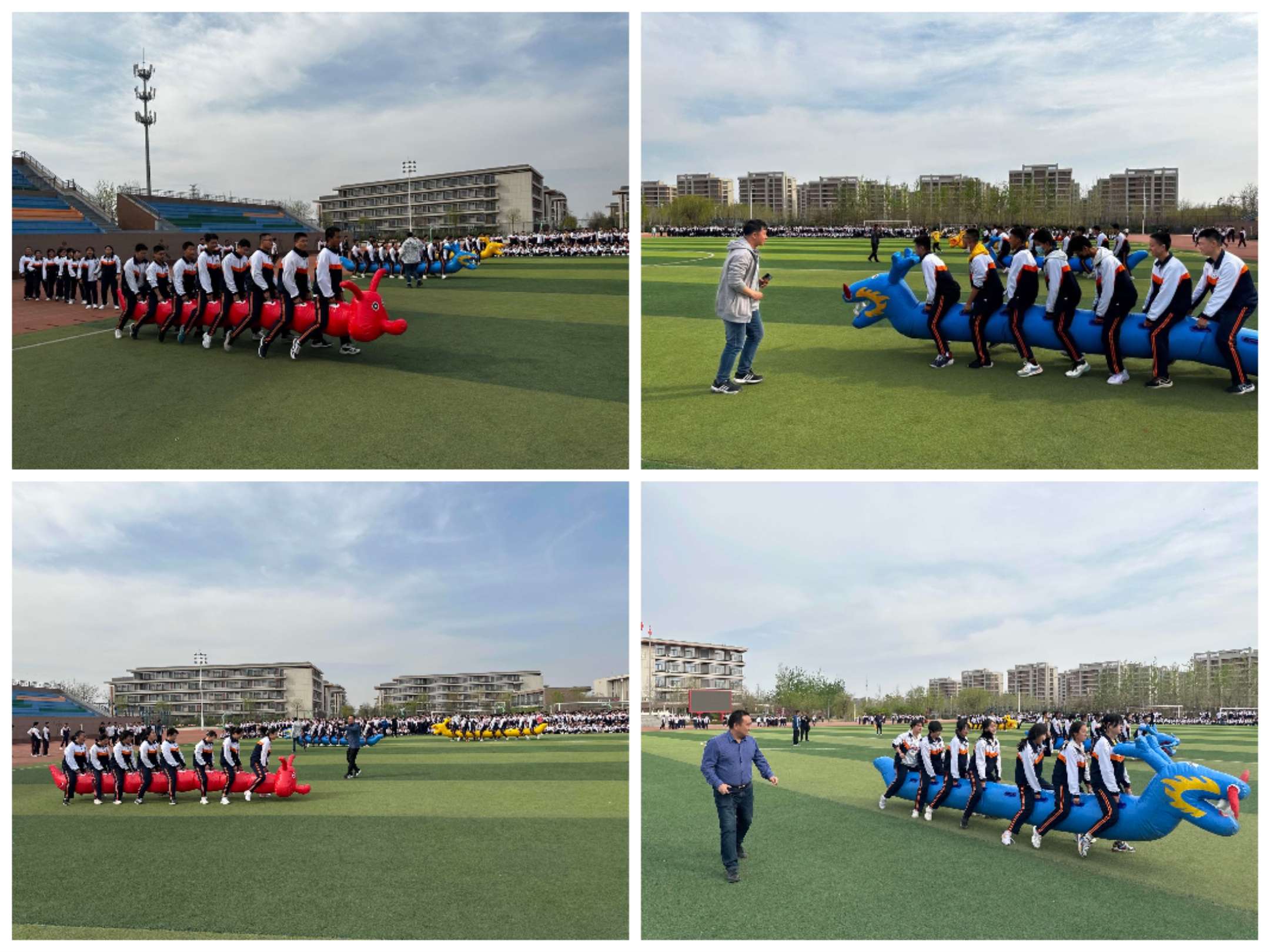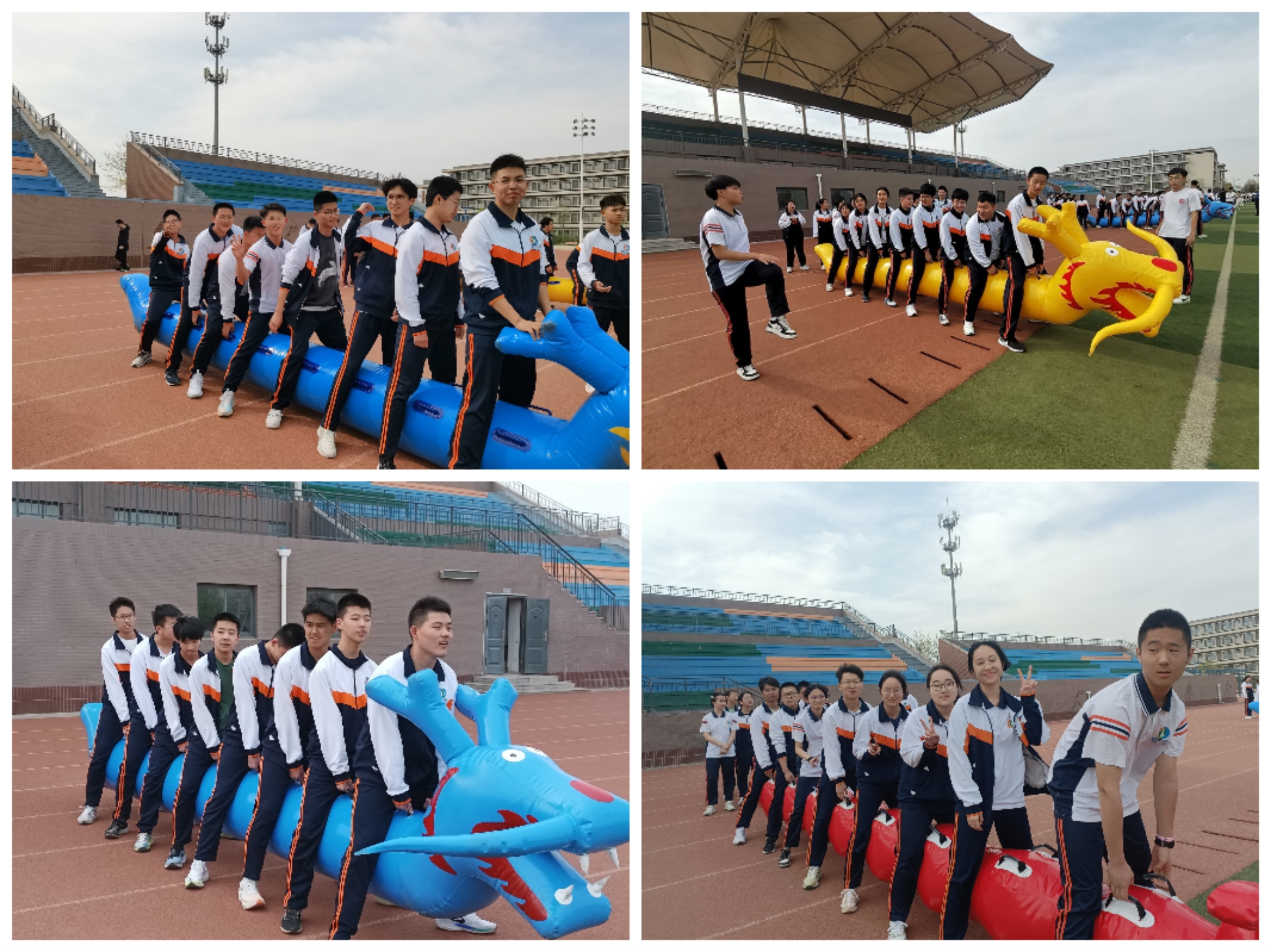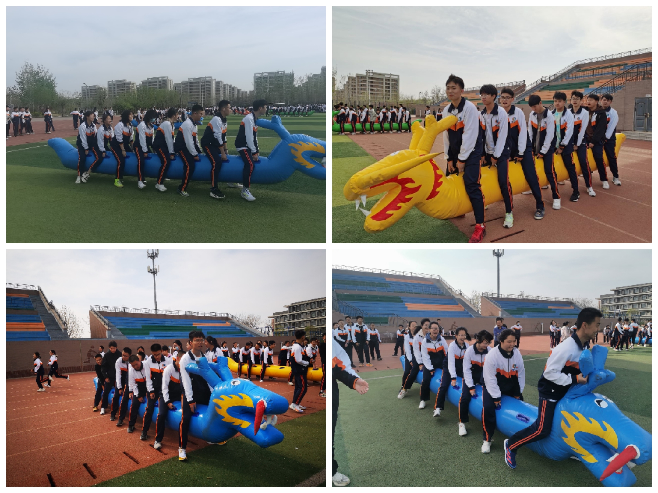 东营市第一中学一年一度的体育节拉开帷幕。为了推动健身运动的发展,促进同学间友好交流,增进友谊,增强团队意识,舒缓心理压力,2022级部在4月2日下午举办了一场充满欢笑和快乐的旱地龙舟比赛。