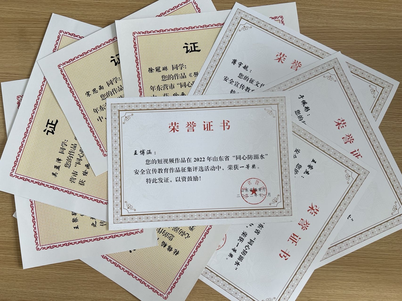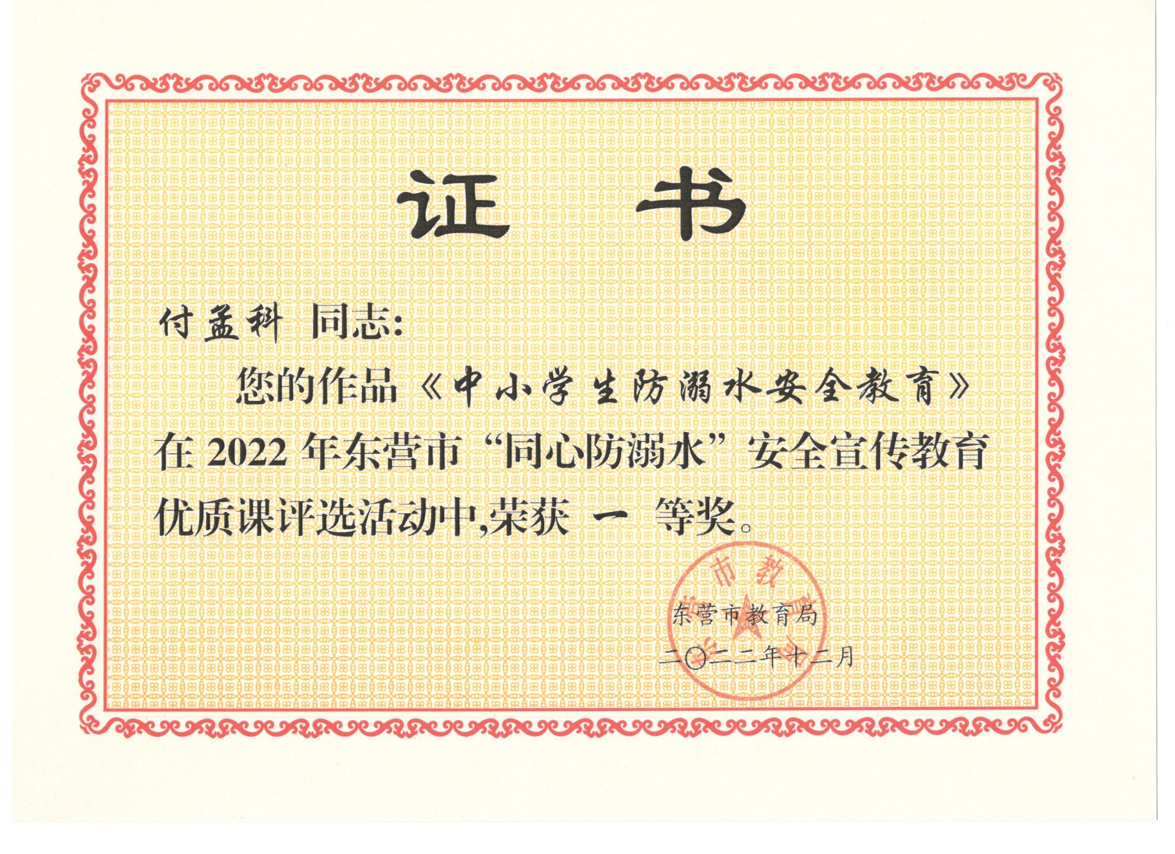 一、根据《山东省教育厅等7部门关于组织开展预防未成年学生溺水专项行动的通知》(鲁教安函〔2022〕8号)和市有关文件要求,我校组织开展了“同心防溺水”安全宣传教育活动。活动中我校共有5名同学作品获省级奖项,5名同学作品获市级奖项,付孟科老师的《中小学防溺水安全教育》荣获安全宣传教育优质课一等奖,学校荣获东营市预防未成年人溺水安全宣传教育“优秀组织单位”。