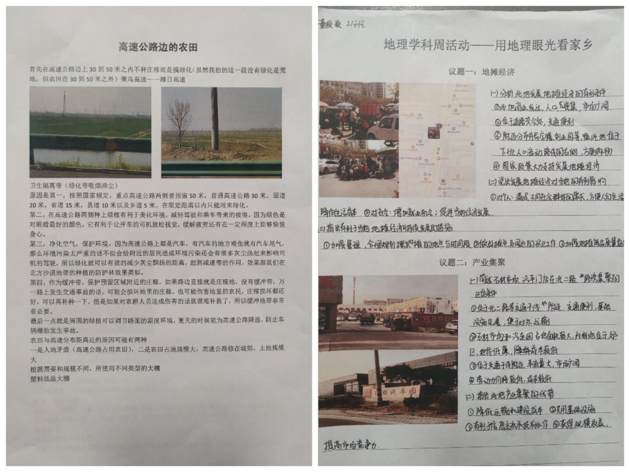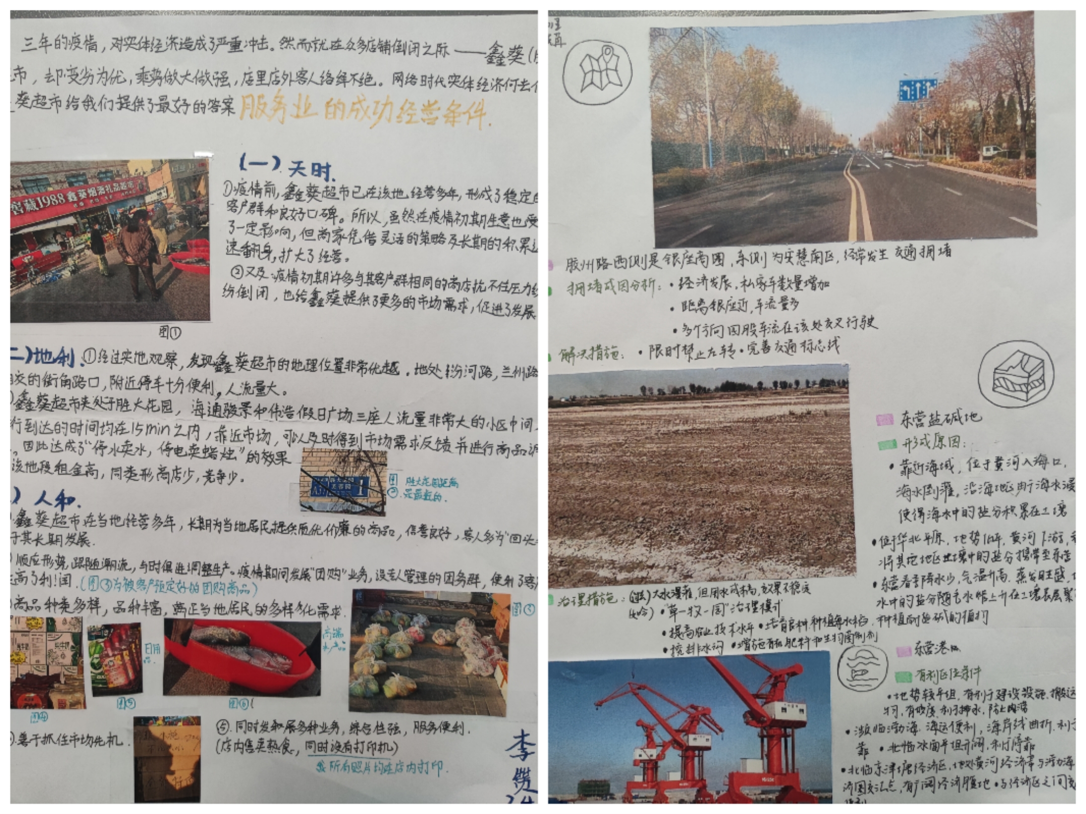 同学们对参与这次活动给予了莫大的热情,他们从现实生活中的景观、事象入手,观察的主题从东营的盐碱地成因、交通拥堵、共享单车到足球场的设置、东西城商业区的布局等,不一而足,但无不表达了对家乡的关注,对生活的热爱,对地理知识的运用,对地理思维的强化锻炼。同学们一边细致观察分析思考,一边饱览自然和生活图景,好不快意!