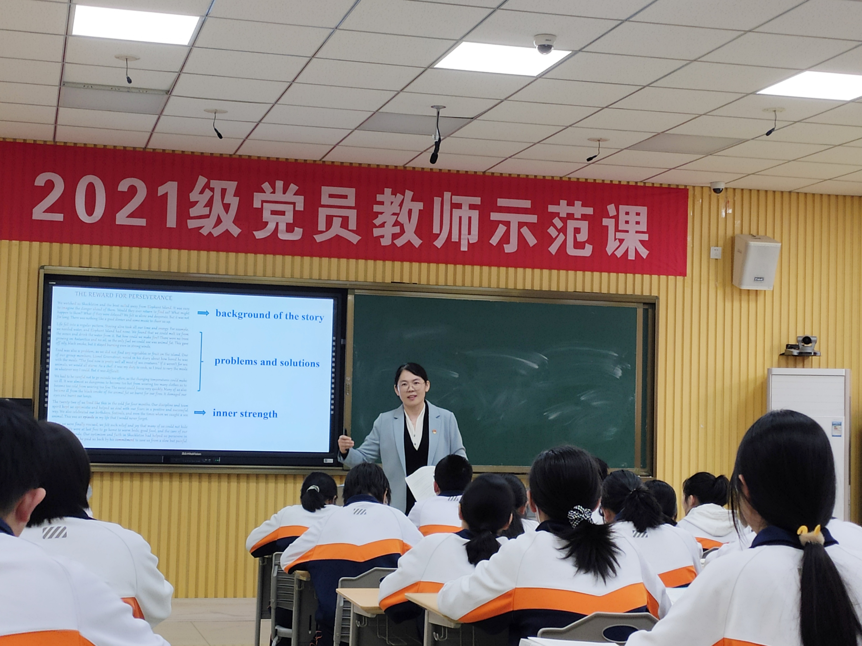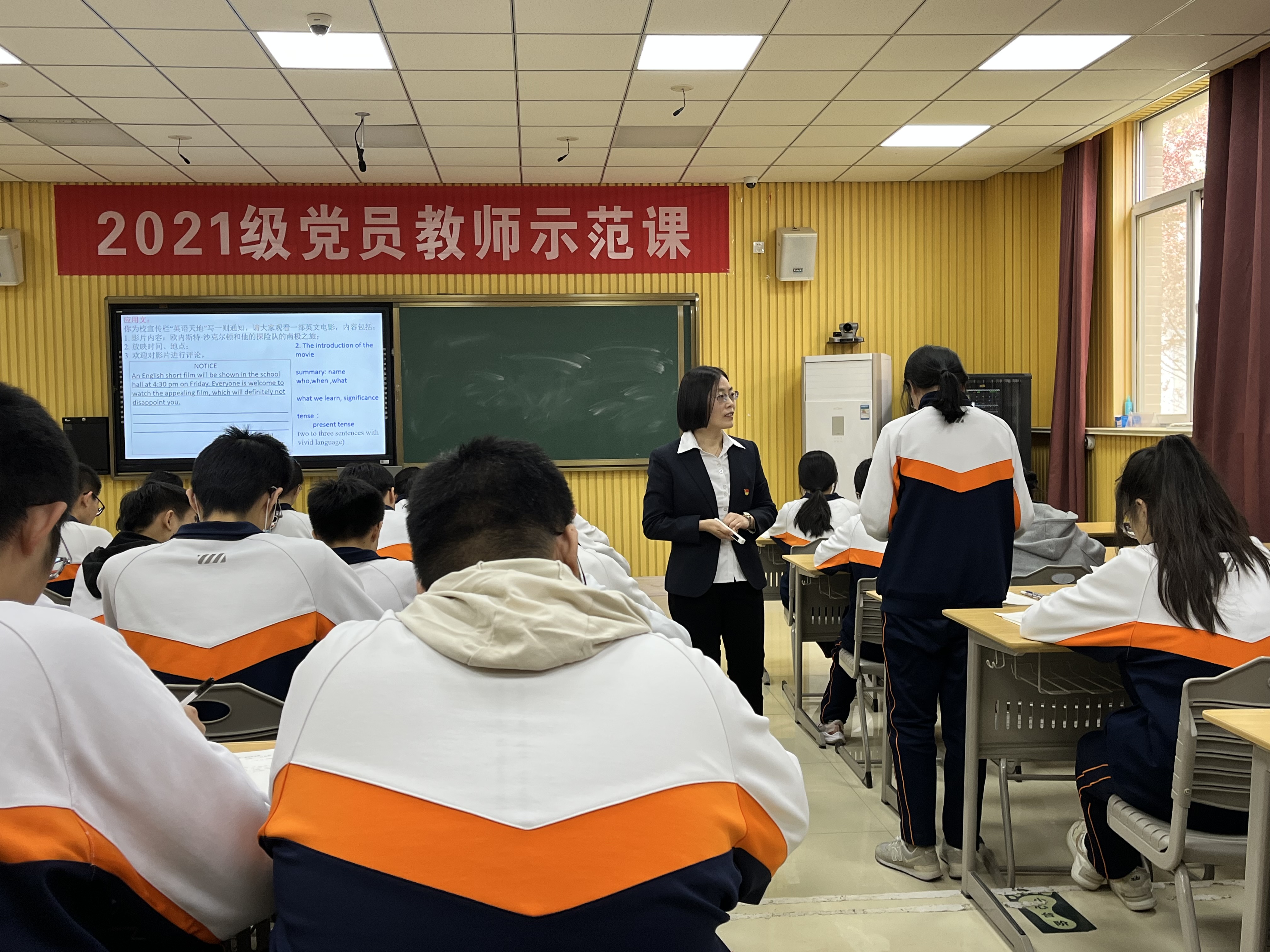 程德云老师由课文重点句型导入,提炼写作句式,逐步引导学生学习书面通知的语言特点、行文格式、写作思路等。程老师的课堂讲练结合,务实高效,课上学生主动分享自己的作文,写作技巧得到了切实的提升。季建芳老师从整体结构的把握,到各段细节的提取,用流利的口语循循善诱,并采用启发式的问题激发学生思考。课上学生积极讨论,踊跃发言,潜移默化中掌握了课文重点,理解了坚持不懈的深刻意义,教学目标在轻松愉悦的课堂氛围中完美实现。