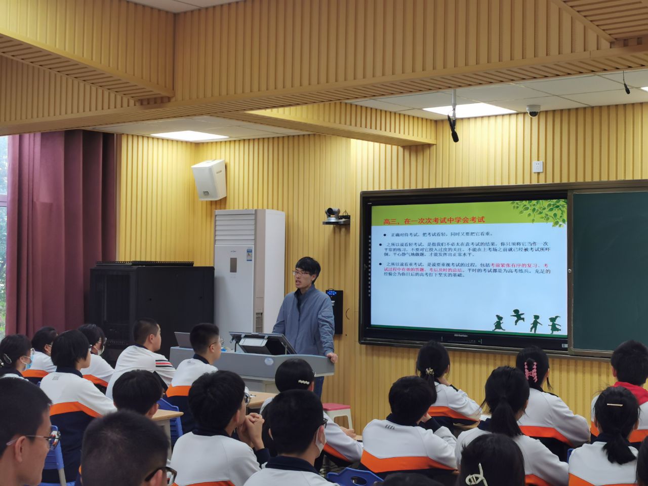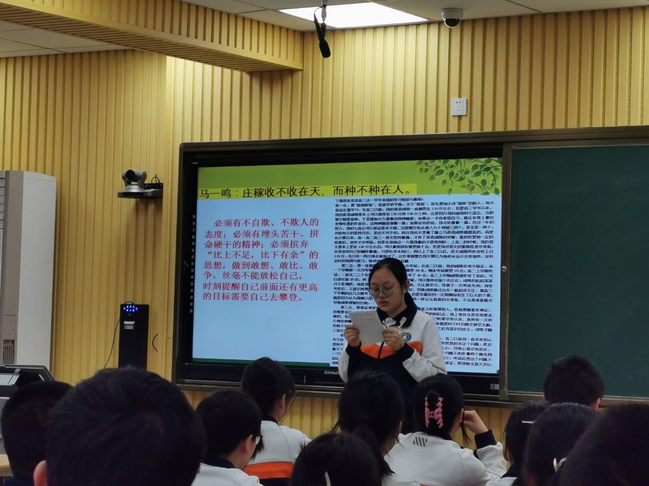 丁景华老师和全班同学一起总结了如何面对起起落落的成绩曲线。丁老师从保持平和的心态、不懈坚持、答题策略与良好的心态等多个方面,给同学们提供了详细有益的指导。丁老师叮嘱同学们,“高三打的是心理战,只有在内心战胜自己,才能在考场上发挥出最好的实力。”