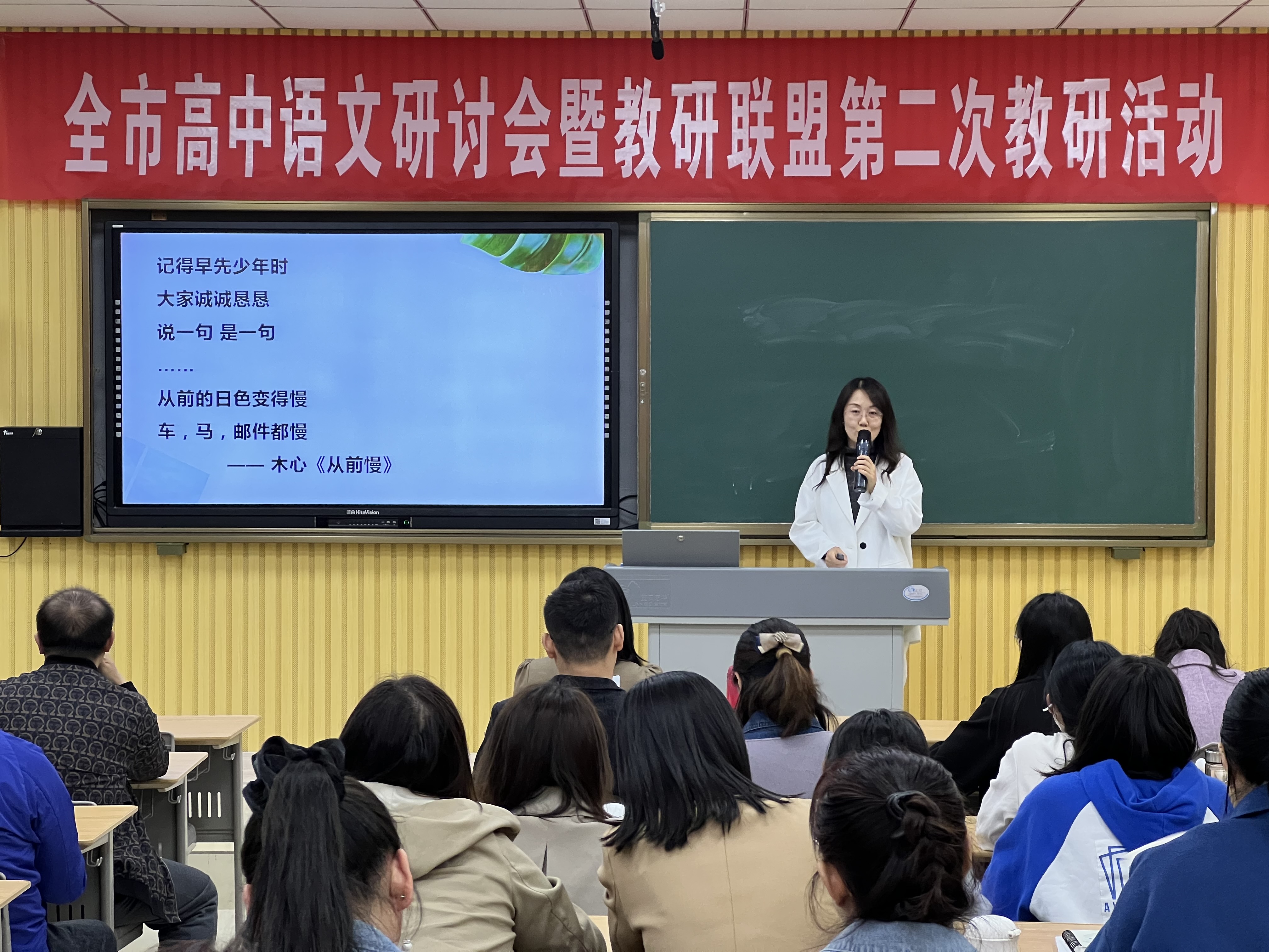 本次学科研讨会以必修下第四单元教材为蓝本,东营市第一中学语文组李姝和康燕老师分别执教两节各具特色的媒介语言公开课,姜洋老师就本次备课的过程和收获向会议做汇报,然后大家进行讨论并听取东营市教育局高中语文教研员徐国亮主任和东营市第一中学2022级部主任张建辉的发言。整个教研活动准备充分、安排有序,参会教师获益匪浅。