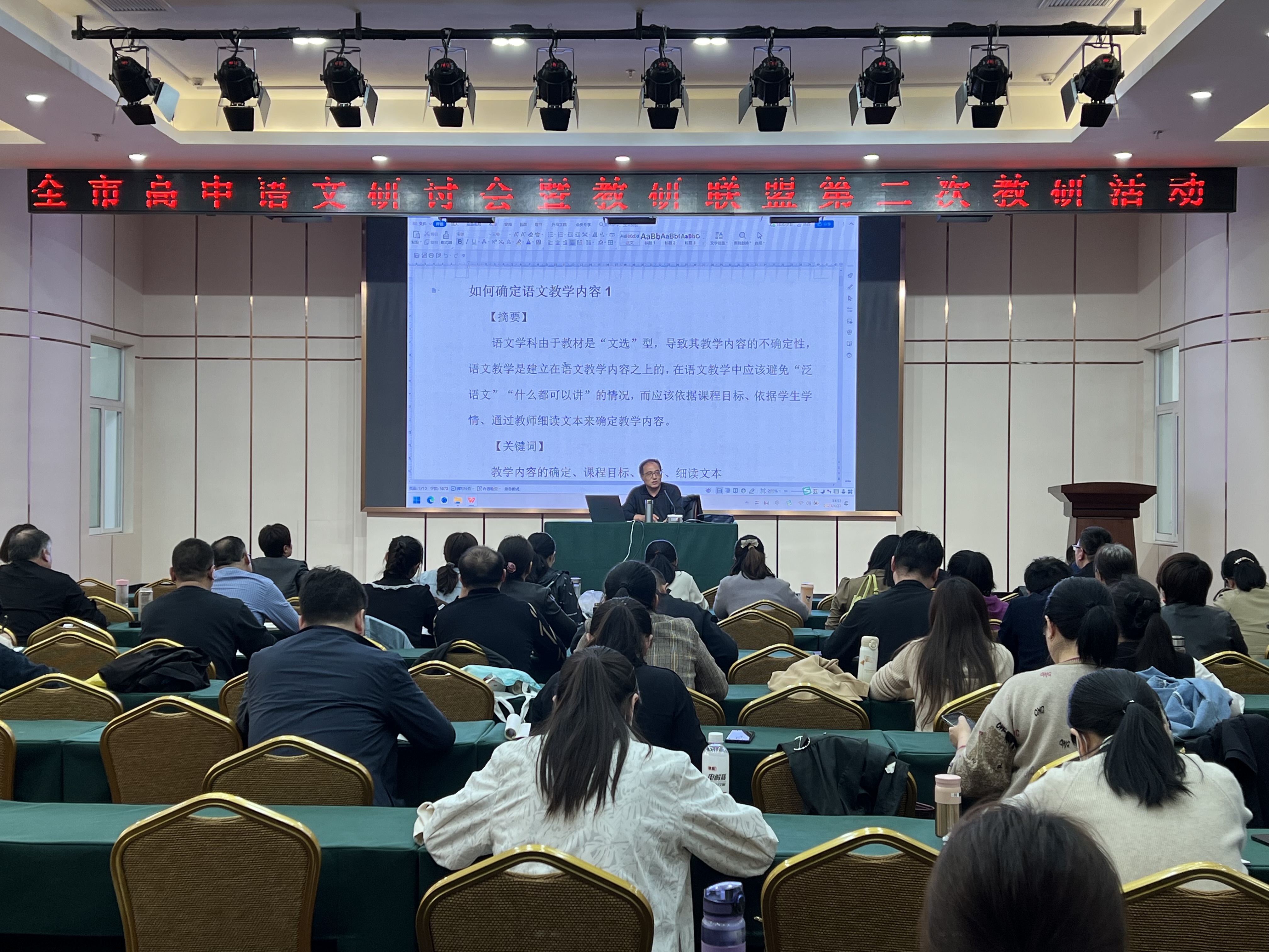 徐国亮主任高屋建瓴、统筹全局,他希望所有从事语文教学的老师,都能着眼于核心素养的大导向,去认真地埋头研究语文单元教学目标的确定和表述,因为这是单元教学规划的关键。徐主任从我们日常教学中单元教学目标的确定和表述上存在的典型问题入手,分析教学目标的偏差会给语文教学带来怎样的危害,并分析如何在突出学科素养价值取向的同时,遵循语文单元教学目标的科学确定和规范表述,使之能够成为教学操作和评价的依据。的确如此,只有教学目标的确定和表述都正中靶心,我们的课堂教学才能实现教有可依,学有可循;教有方向,学有目标。