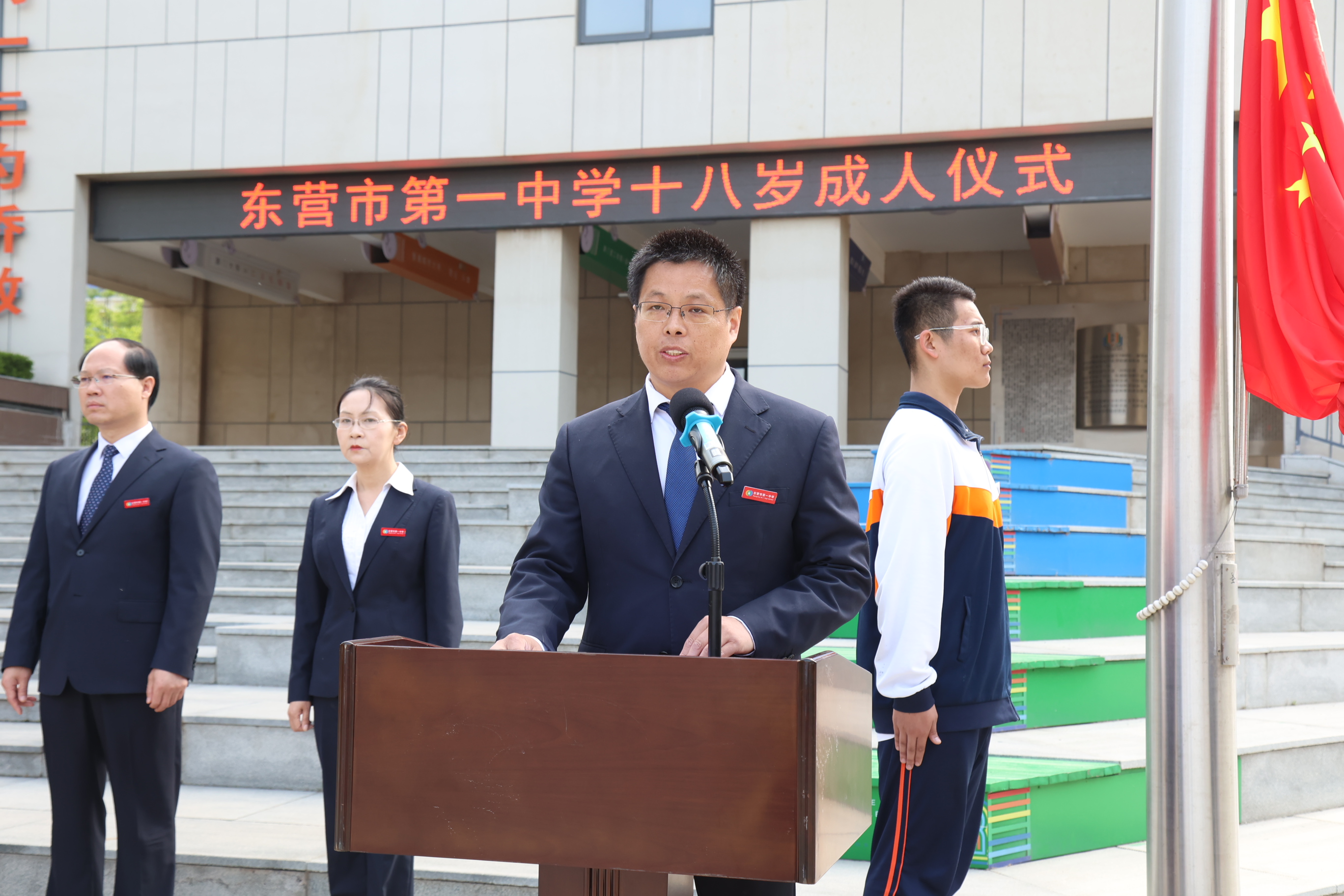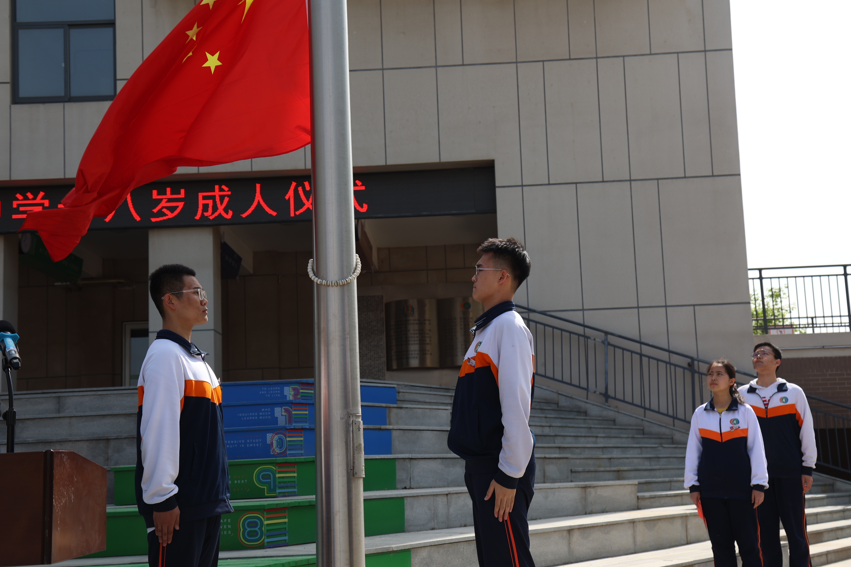 庄严的仪式,青年的盛典,这是同学们迈入成人行列时接受的一场洗礼,也是青年人向人生未来吹起的冲锋号角。希望全体高三学子,牢记面向国旗的庄严承诺,牢记家长老师的嘱托,勇敢地承担起共和国公民应尽的责任,以更加昂扬的姿态、更加饱满的精神,砥砺青春,逐梦前行,去创造美好的明天,为社会发展、祖国富强贡献自己的力量!