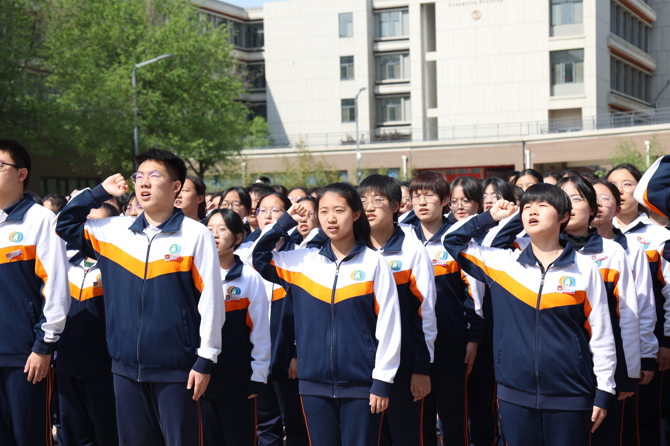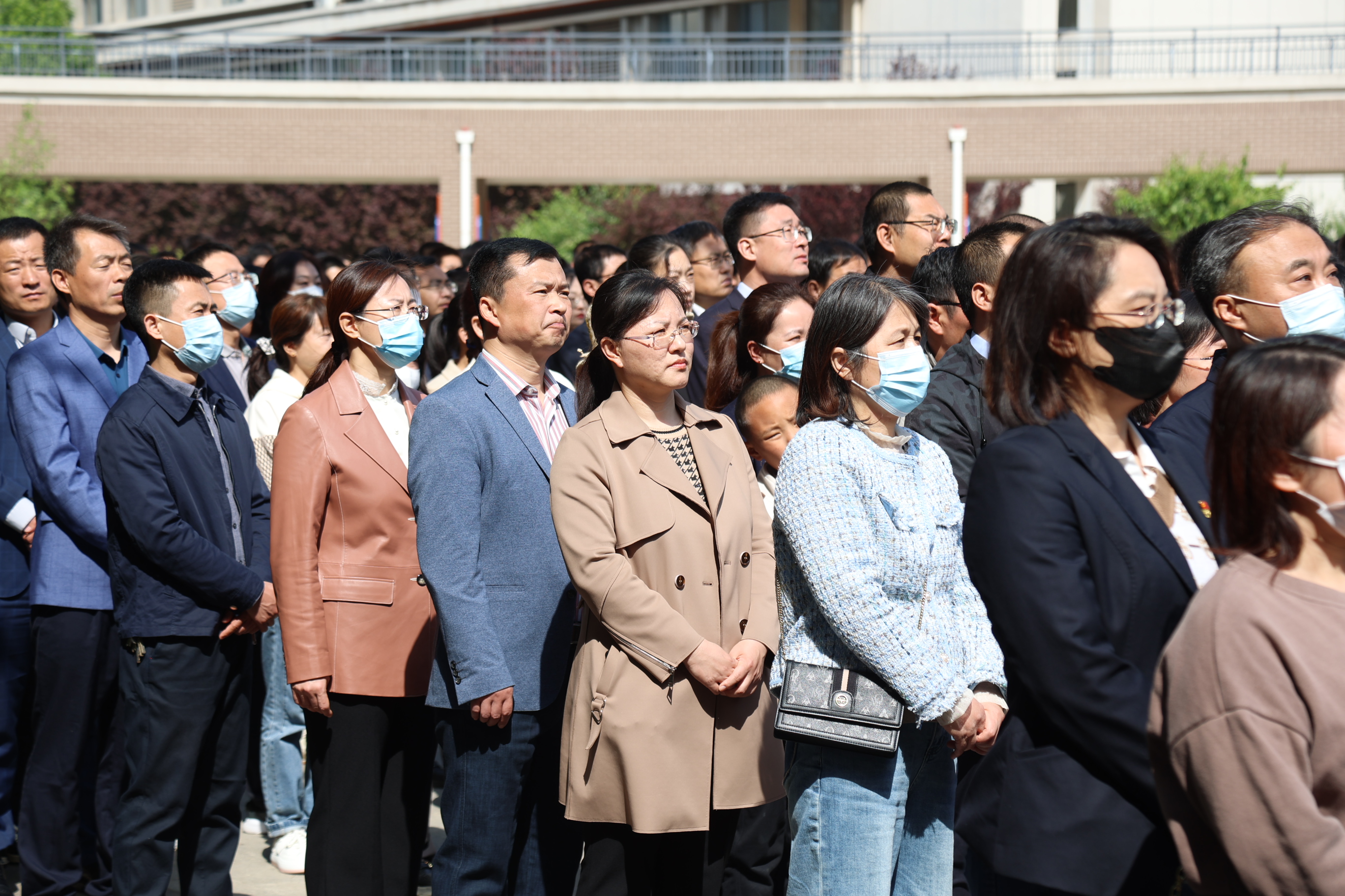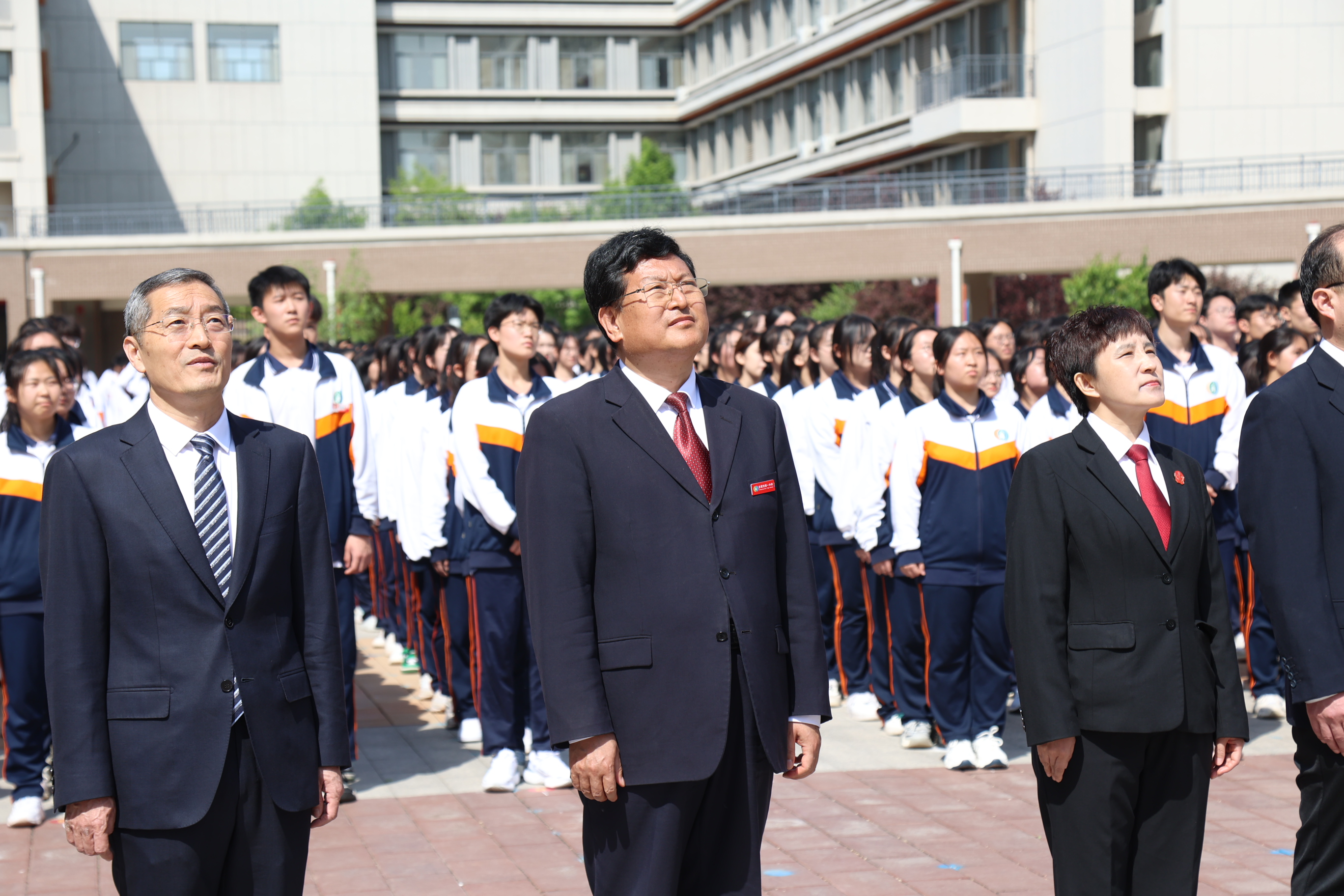 首先举行了隆重的升旗仪式,五星红旗伴随着雄壮的国歌声冉冉升起。在庄严的五星红旗下,全体师生共同聆听了习近平总书记对青年人的寄语,将总书记的殷切叮咛铭记在心。