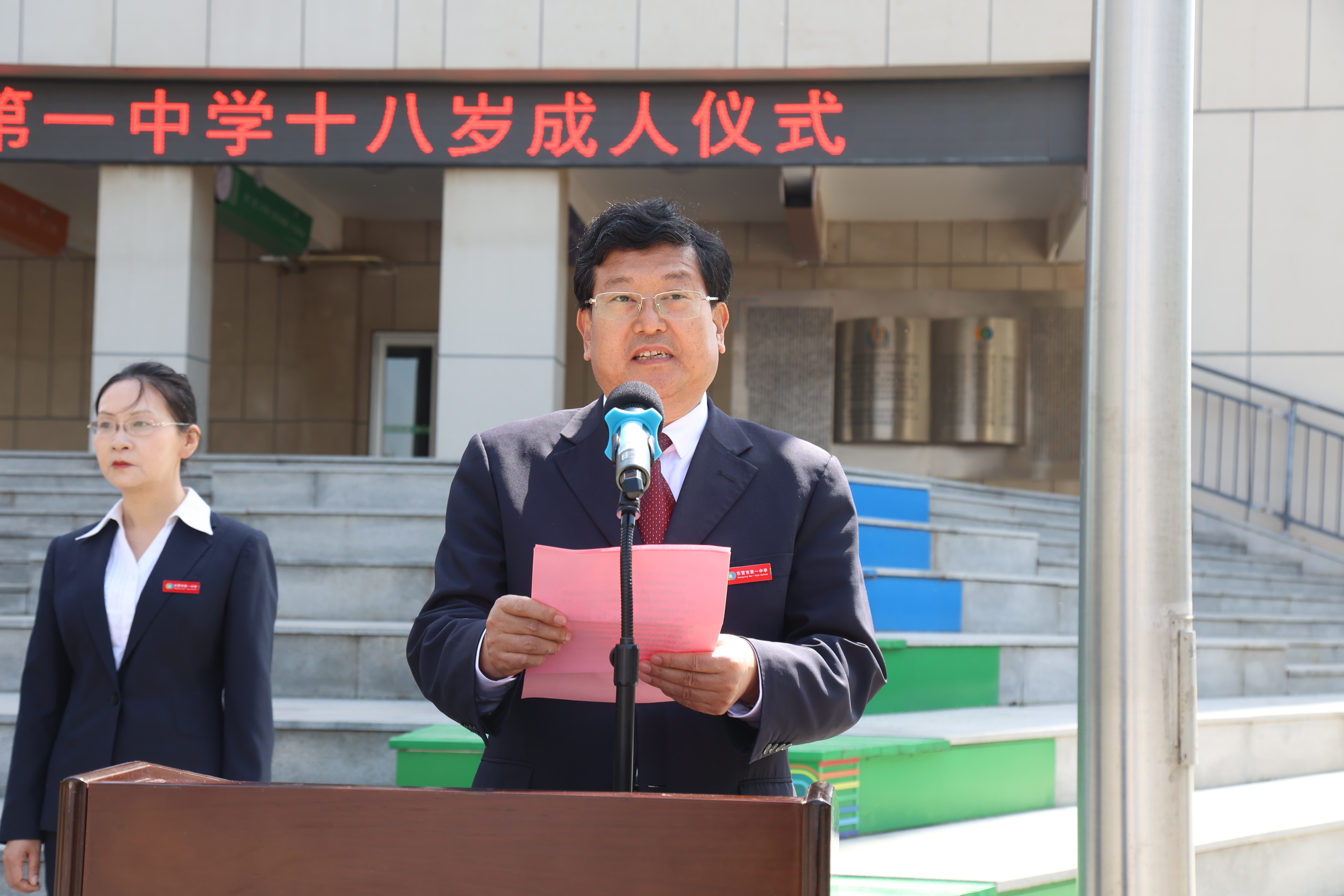 学校党委书记、校长史本泉,学校法制副校长、市中级人民法院刑三庭庭长桑爱红,学校法律顾问、山东领先律师事务所主任李学宗,高三年级家长委员会主任张秉正,家长代表、疫情防控先进个人李文文,家长代表、优秀共产党员胡艳玲,家长代表、心理咨询优秀家长志愿者张海霞,副校长马占武,学管处主任董海峰,高三年级部主任程志伟,教师代表王晓华、谢鹏娟,以及全体高三教师一同见证了同学们跨入成人行列的重要时刻。仪式由学校团委书记丁子勇主持。