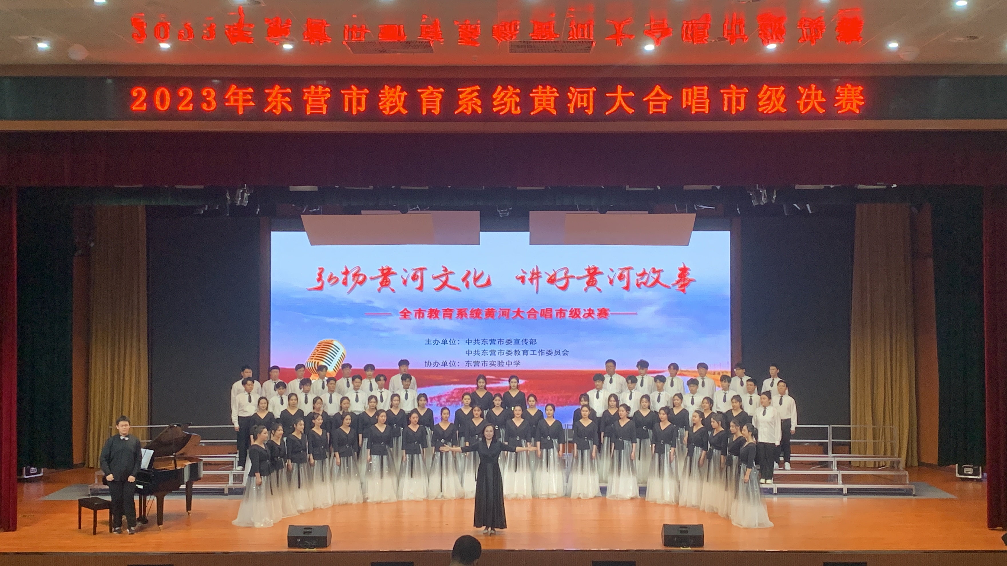 5月7日,由中共东营市委宣传部、中共东营市委教育工作委员会主办的“弘扬黄河文化 讲好黄河故事”东营市教育系统黄河大合唱比赛在东营市实验中学隆重举行。市一中长风合唱团再次精彩亮相,以优异的表现,从东营市参加决赛的29支队伍中脱颖而出,获得东营市一等奖第一名。这是长风合唱团继2019年全市教育系统大合唱比赛获得一等奖之后,再次夺冠。