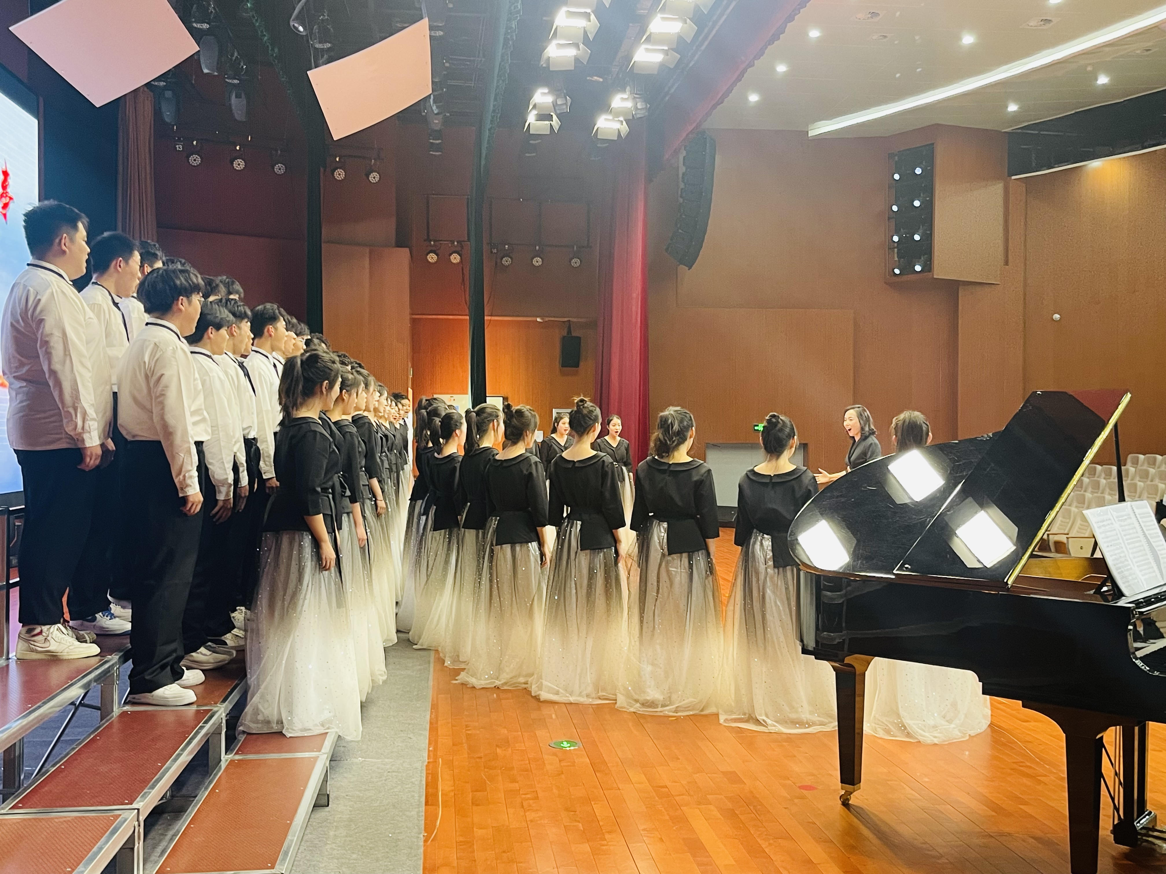 自接到比赛通知后,学校领导高度重视,艺术处第一时间组织音乐组的专业老师积极排练;史本泉校长也亲自来到排练现场,为同学们加油鼓劲。同学们克服了学业考试紧张、合唱曲目复杂、时间紧迫等多种困难,刻苦训练,勇于挑战,激情放歌,礼赞二十大,唱响新时代,用高亢激昂的声音,唱出了一中学子的新风采,唱出了一中校园的主旋律,展现了我校艺术教育的丰硕成果,为学校赢得了荣誉。