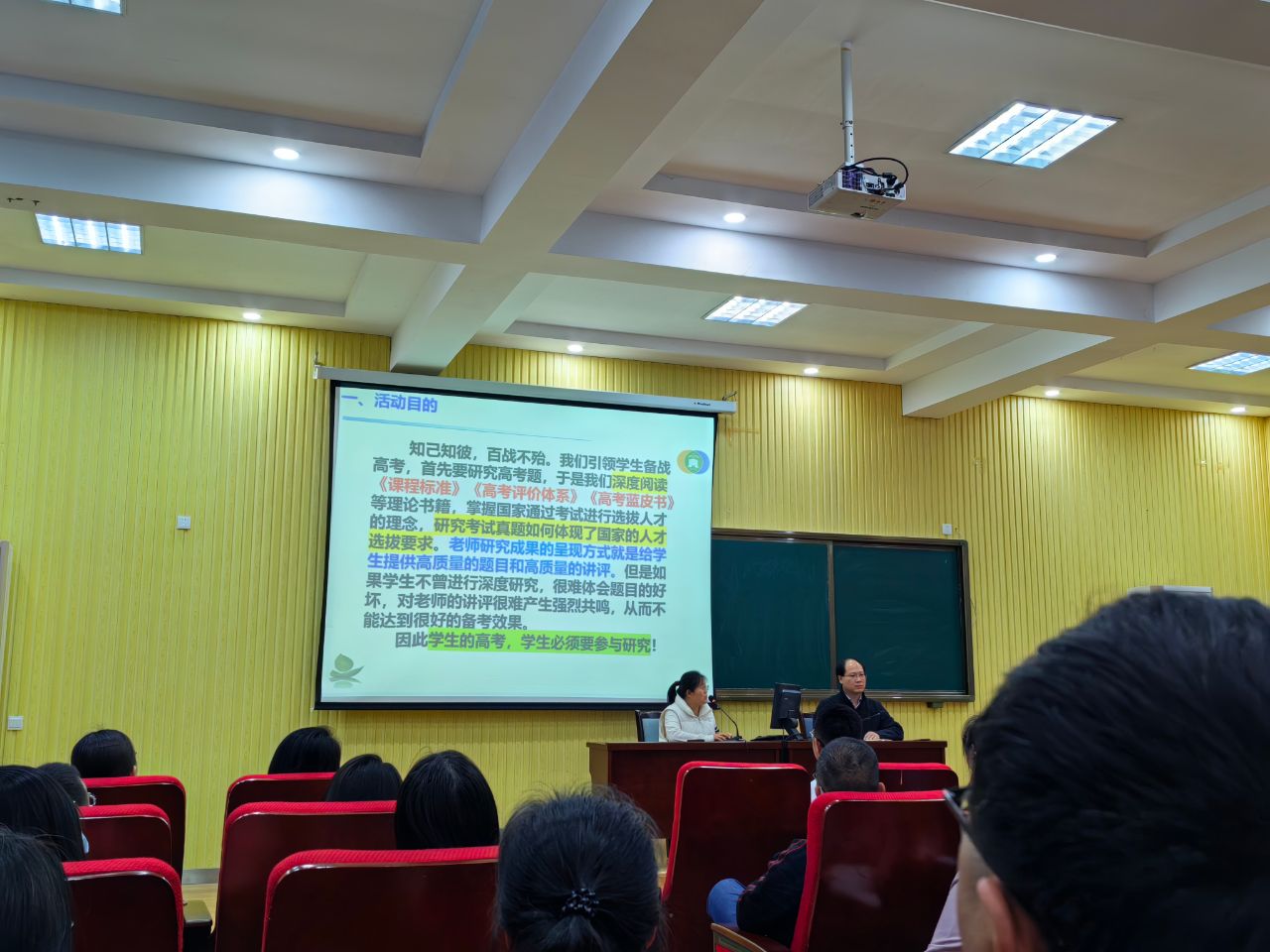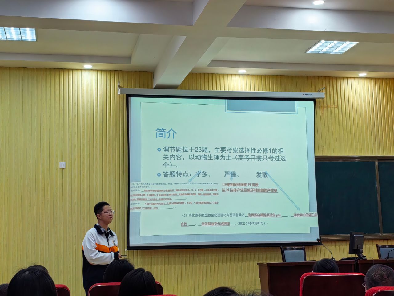 5月5日,26班生物教师李敏在级部例会上介绍了“开讲了!我的高考!”——学生研究高考真题活动的相关情况。张晨玥、贾锦涵同学在级部例会上展示了自己高考生物真题研究成果。两位同学的成果展示思路清晰、高考真题研究深入细致,展现了市一中高三学子敏而好学的青春风采,赢得了参会教师们的热烈掌声。