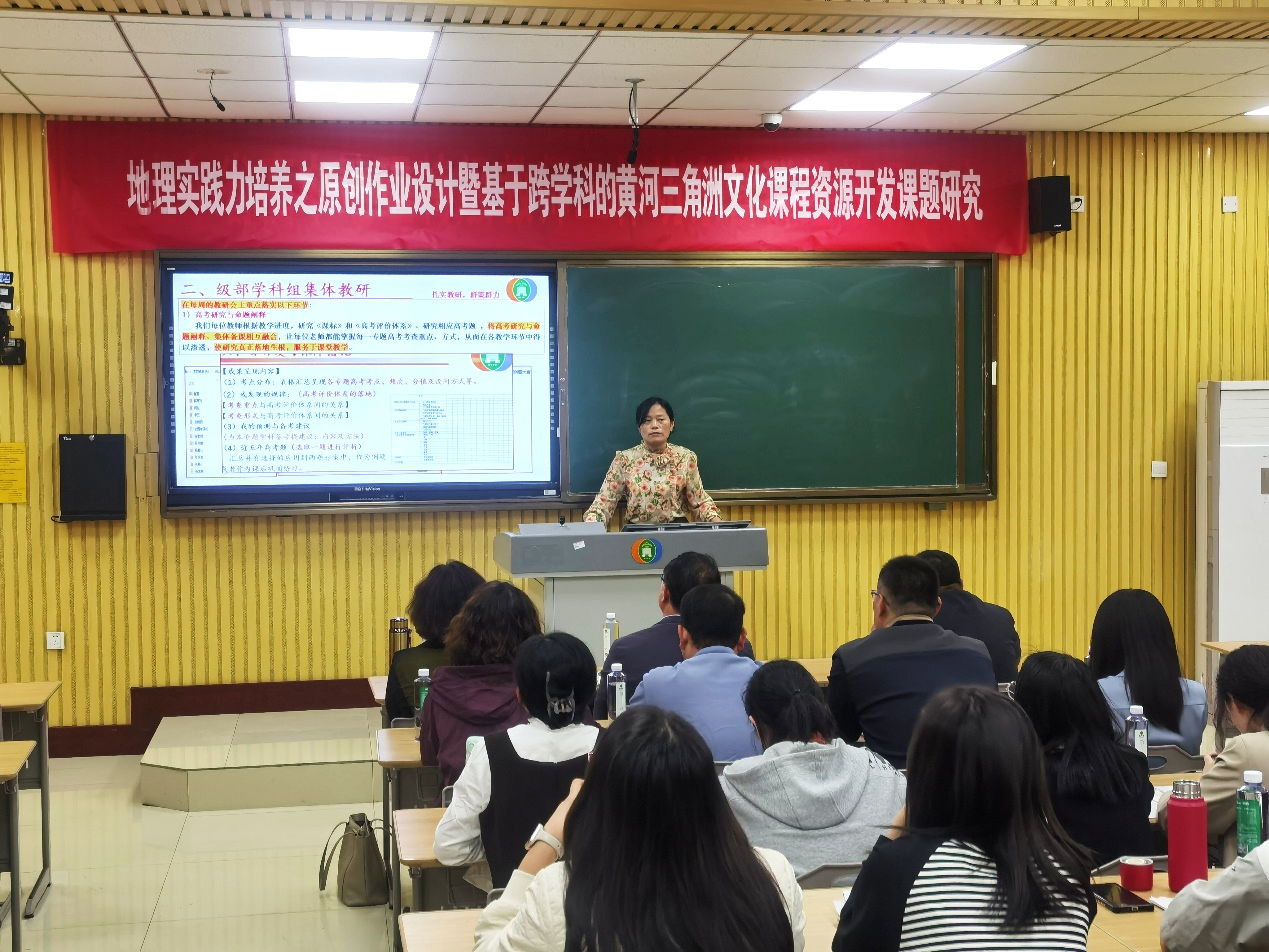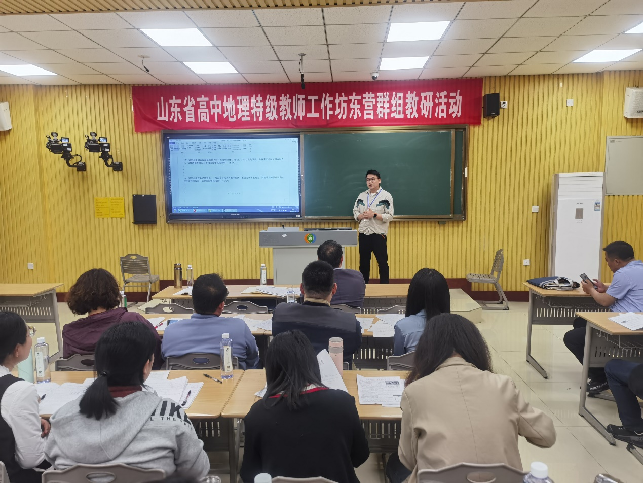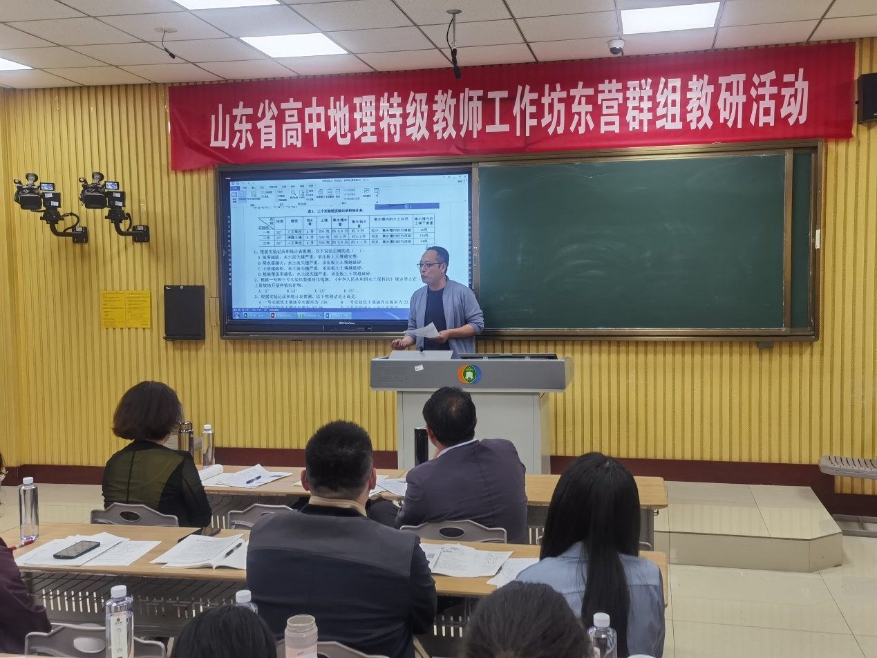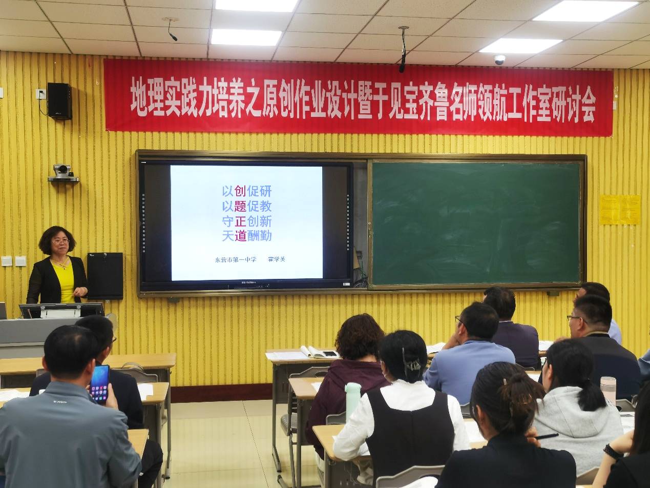 活动的第二项内容是由东营市一中的教研组长霍学英老师就本校的原创命题工作开展和实施进行了经验分享,高一地理组长李云老师就本校的常规教研工作给大家进行介绍。市一中地理组在日常工作中不断改善工作方式,提升工作效率,地理组的老师们努力完善自己、认真负责、精益求精的精神得到了与会老师的高度赞扬。