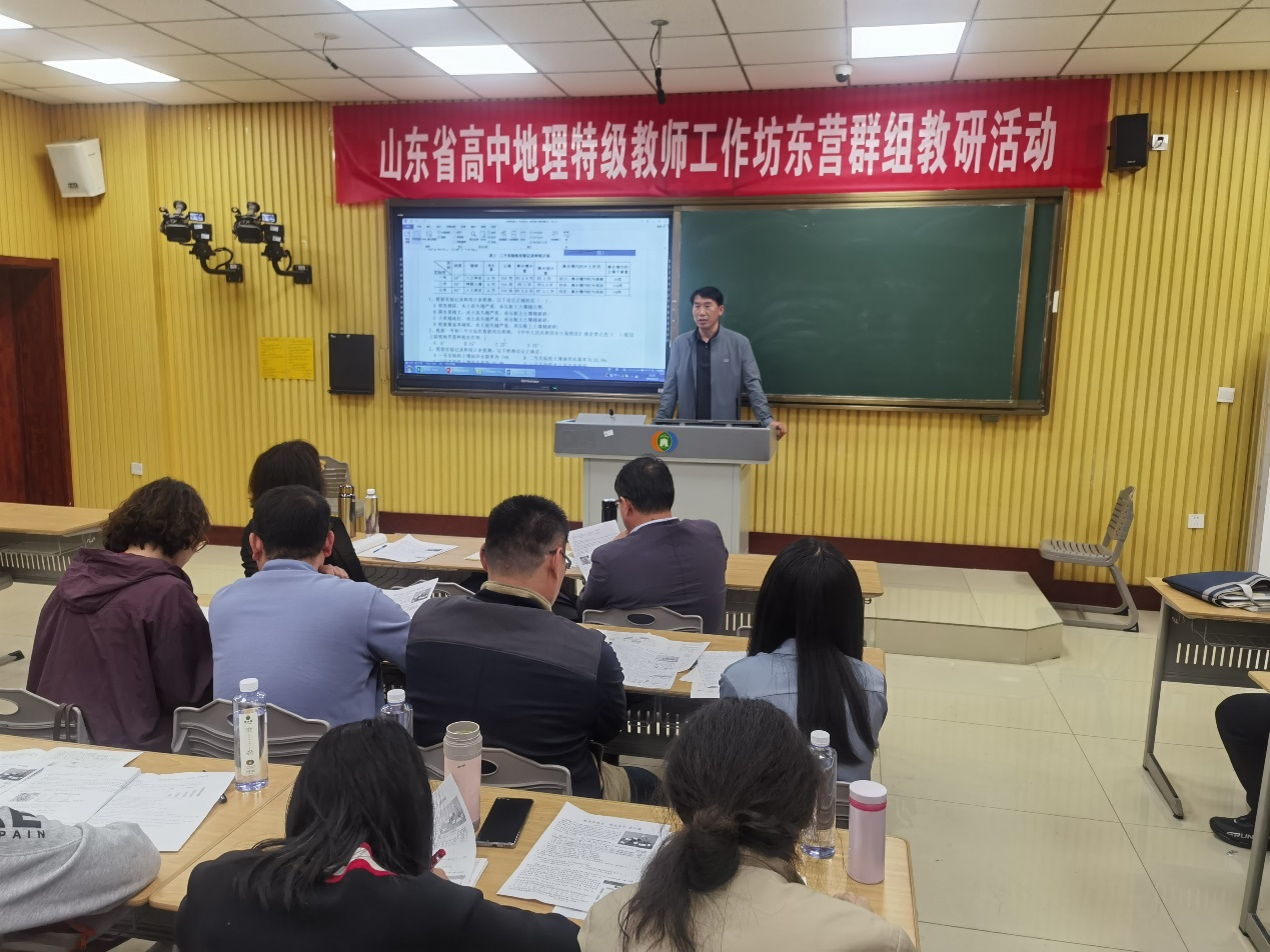 东营市一中、东营市二中、利津县高级中学三所联盟学校的地理教师,垦利一中部分教师和洛阳市来我校学习的两位地理教师全程参与了此次活动。本次教研活动由东营市一中地理学科高长征主任主持。