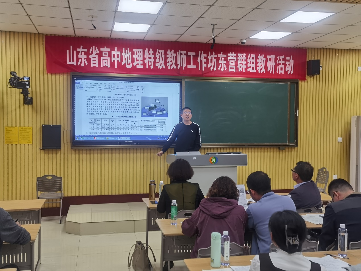 最后,东营市高中地理教研员于见宝老师作总结发言,倡导教师要注重培养选取命题素材、确定试题主题、寻找命题角度、设置命题问题、打磨试题答案、绘制图表等原创试题的命制能力,要加深对课标的研读、对教材的理解、对学科素养的思考,不断提升自身的专业素养,共同促进东营市高中地理教育的研究和可持续发展。