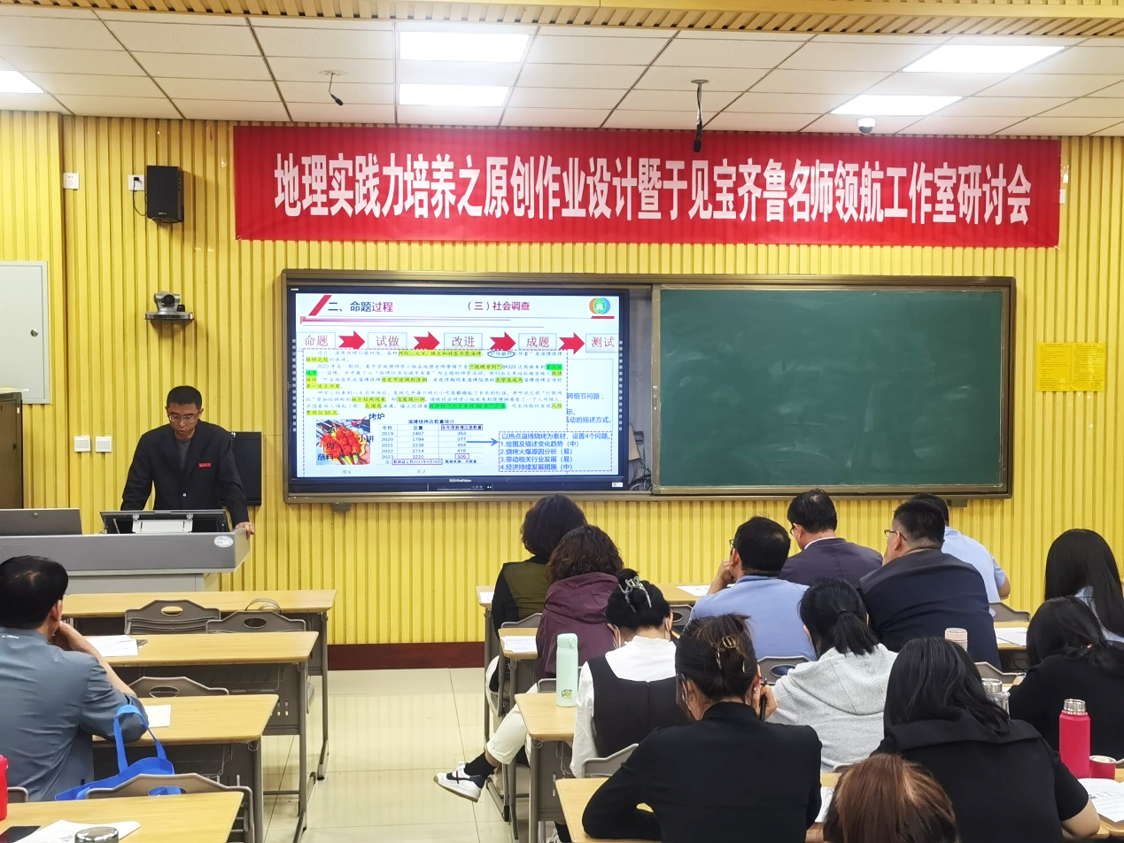 研讨活动的首项议程是由市一中的何东老师、市二中的董熠老师、利津县高级中学的方淑敏老师分别展示基于“地理实践力”素养突破的地理原创试题,并从高考评价体系和课程标准的研究、学情考情、命题立意、试题情境、试题设问、试题答案、学生试做等多方面进行分析。