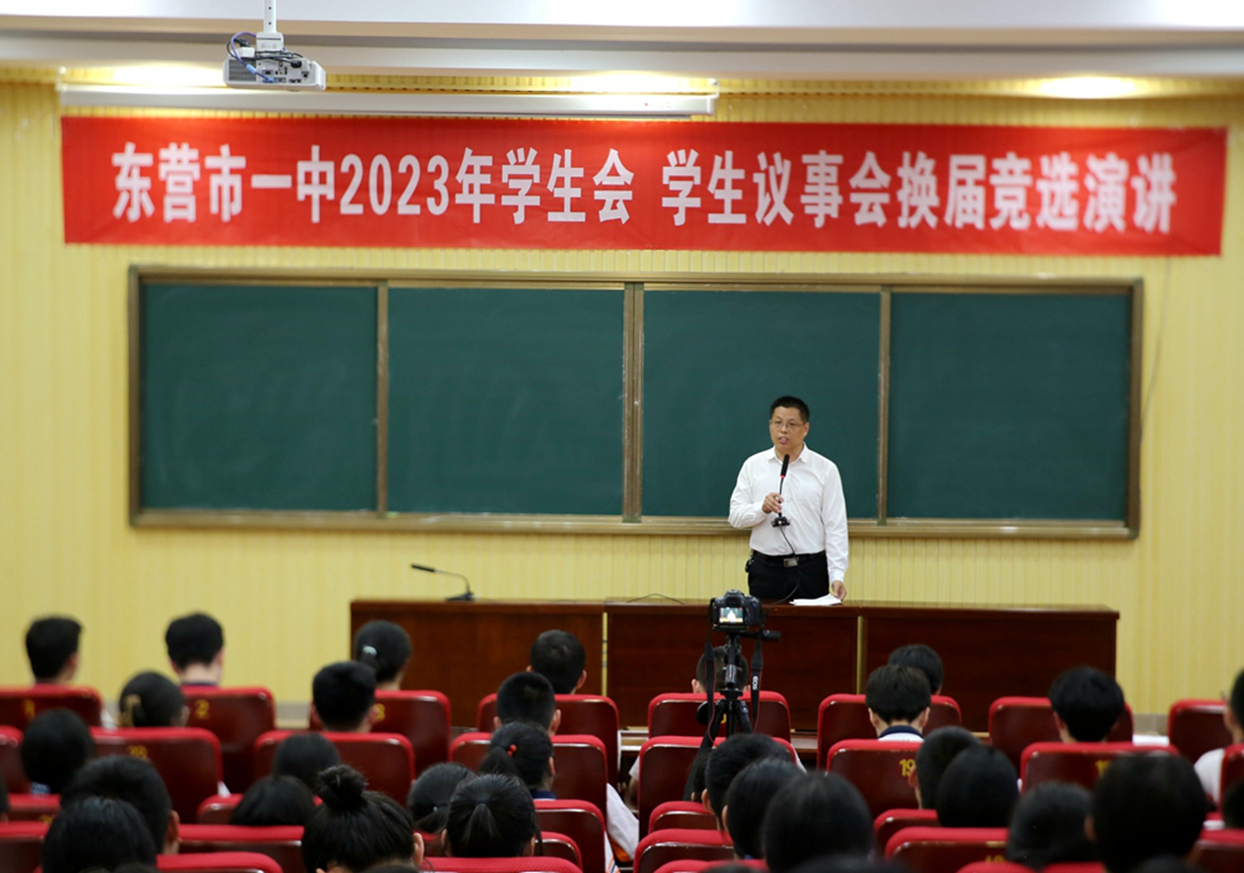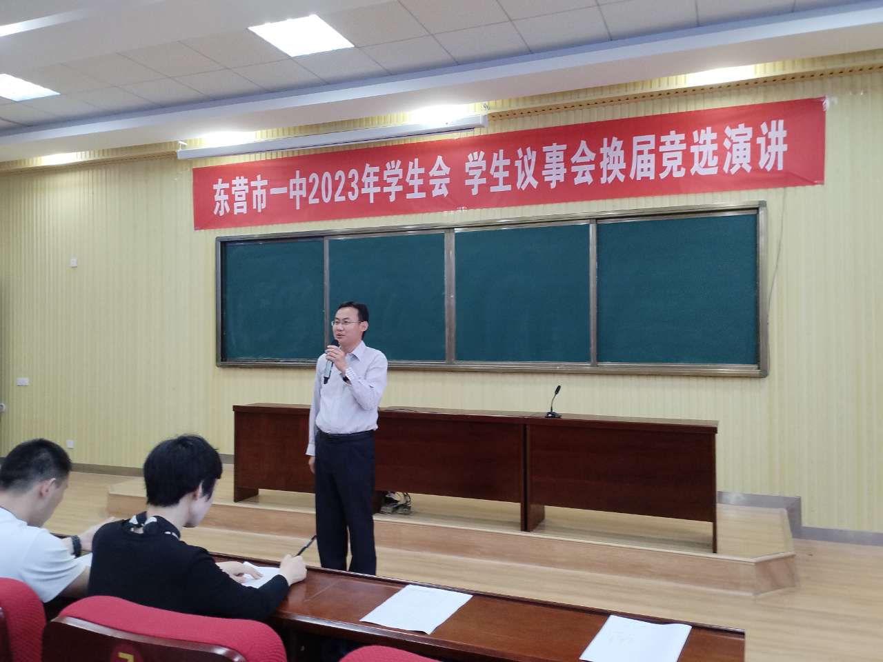5月14日下午,市一中举行2023年学生会、学生议事会纳新换届竞选活动,上一届学生会成员及参加竞选的人员计60余人参加了活动。活动由学校团委书记丁子勇主持。