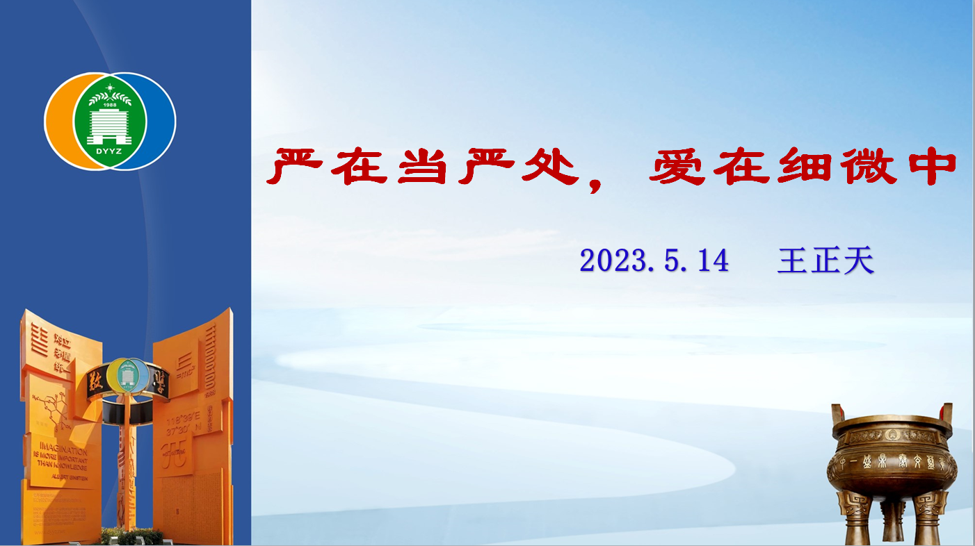 5月14日,2022级部在会议室举行高一学年第二学期第六期班主任微论坛活动,北一楼班主任管理团队代表王正天老师做了《严在当严处,爱在细微中》的汇报。