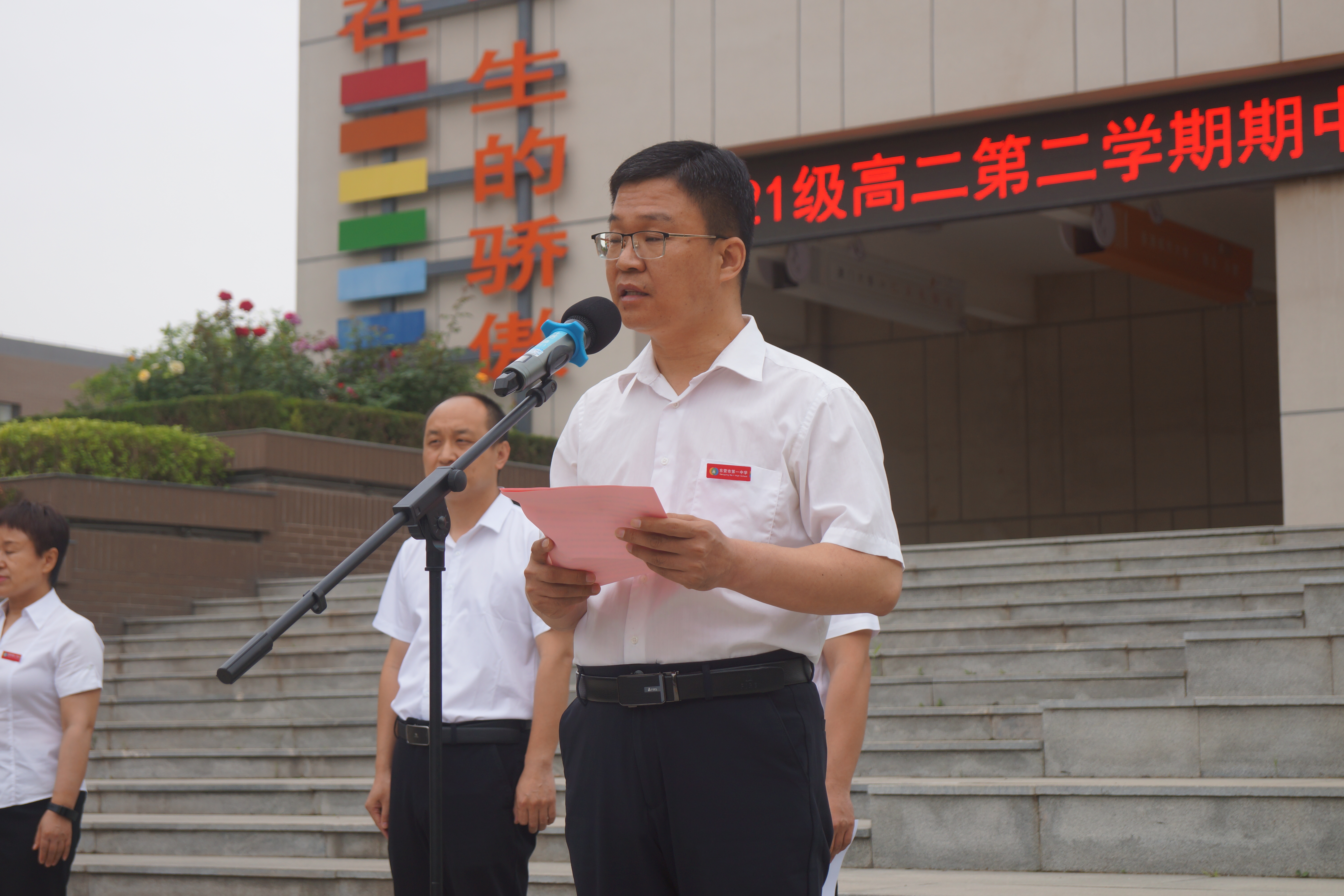 为激励全体师生下定拼搏决心,树立必胜信念,以更饱满的热情迅速进入高三备考状态,提升高考一轮复习备考的效果,5月21日下午,市一中2021级在学校升旗广场隆重召开期中考试表彰大会暨一轮复习动员会。副校长马占武、教务处主任李衡斌与2021级全体师生参加了大会。会议由韩磊副主任主持。