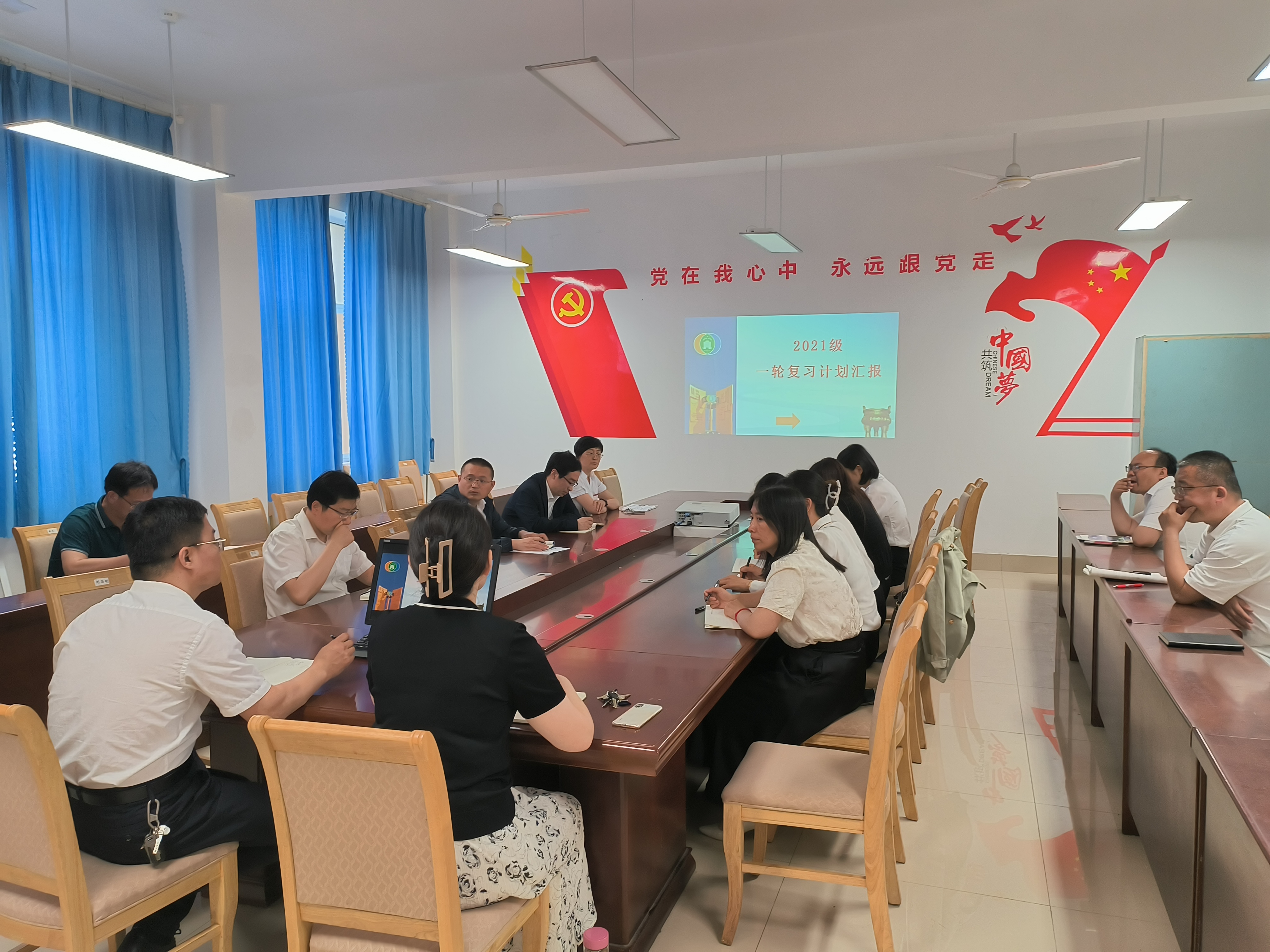 计划是行动的先导。为扎实推进高考备考工作,提高复习的针对性和有效性,5月21日,市一中2021级在三楼会议室召开了“一轮复习汇报交流会”。全体教学组长和级部管理团队参加了会议,会议由级部助理季建芳主持。